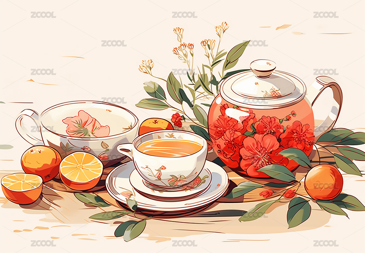 中国风,花果茶,插画,矢量,包装,素材,原创,设计,食品,包装设计