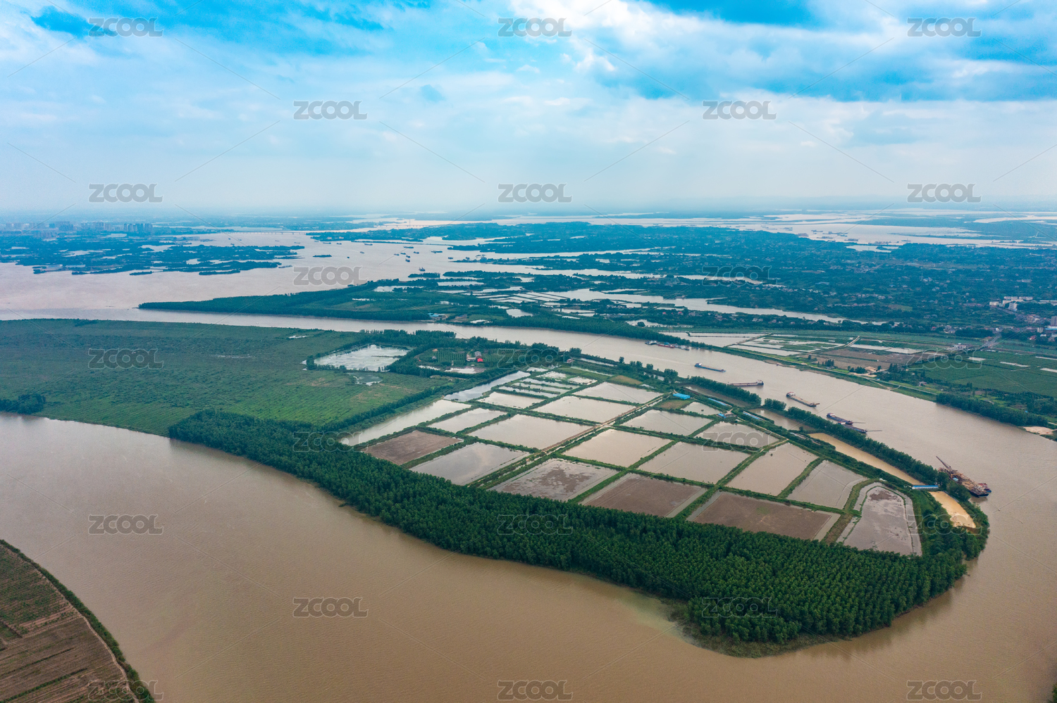 杭州富阳区富春江五丰岛江南水乡田园乡村湿