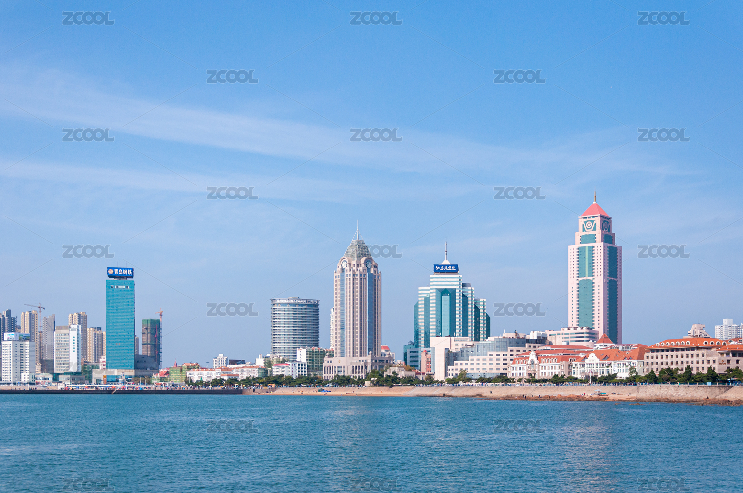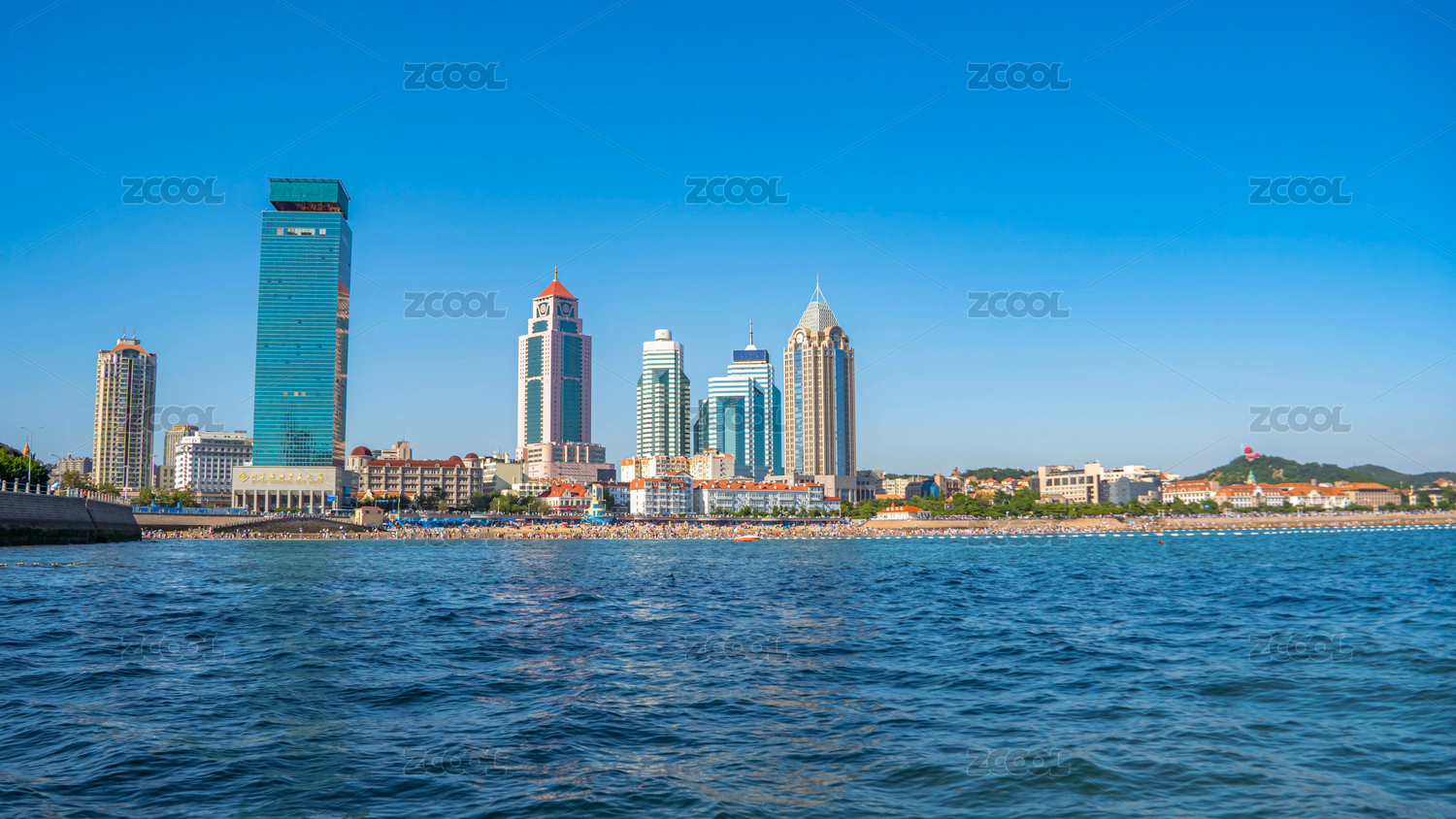 中国山东青岛栈桥海滨海岸城市建筑风光