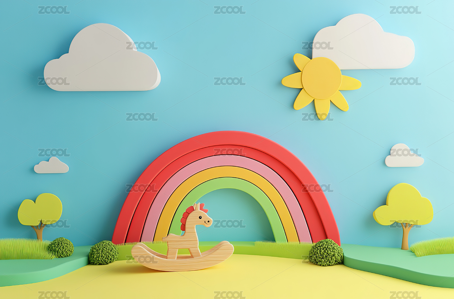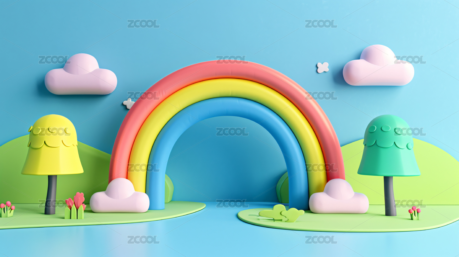 微缩创意儿童节积木彩虹桥上可爱的动物