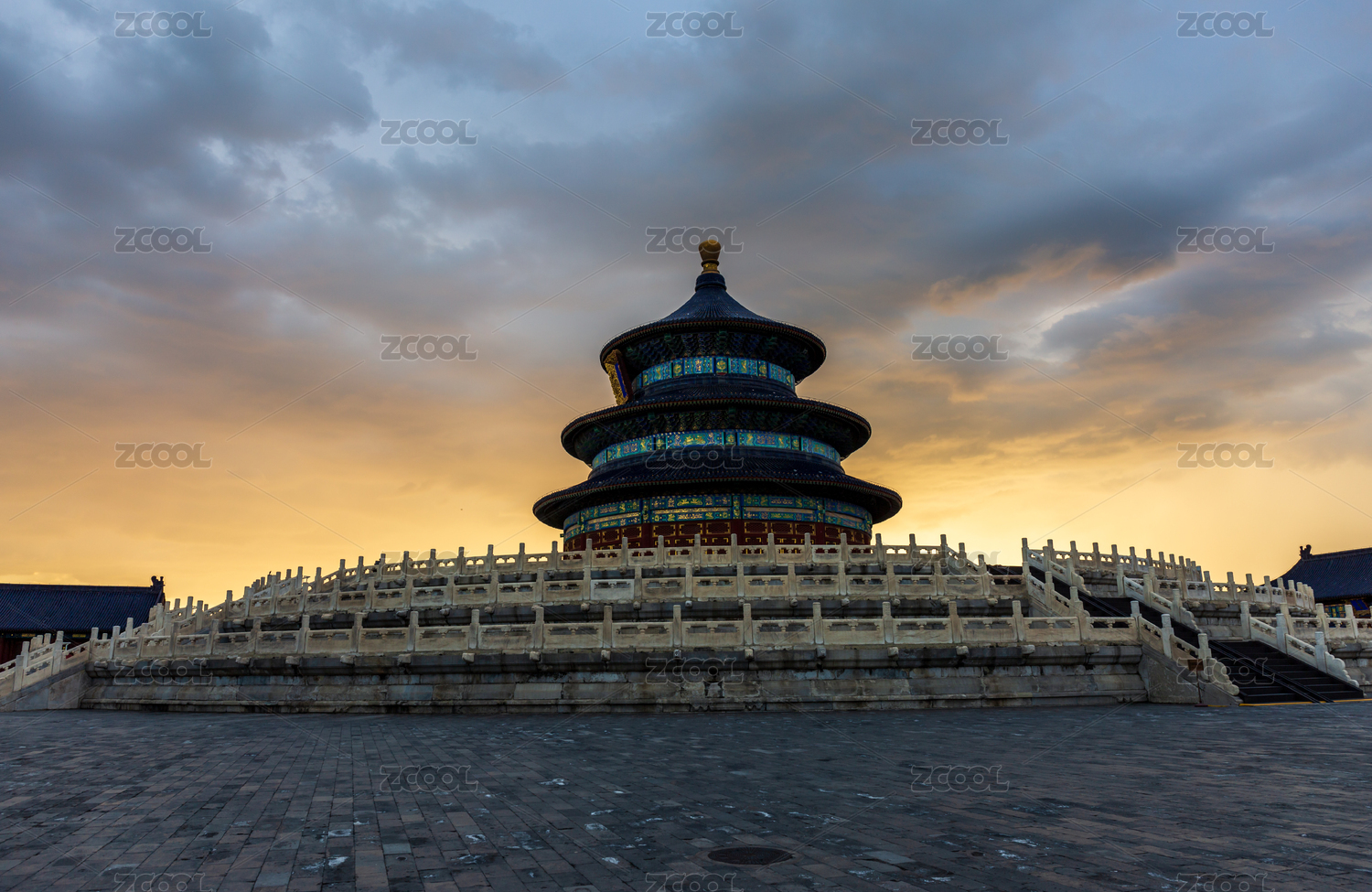 中国,北京,天坛,天坛公园,城市,建筑,景色,祈年殿,日落,云
