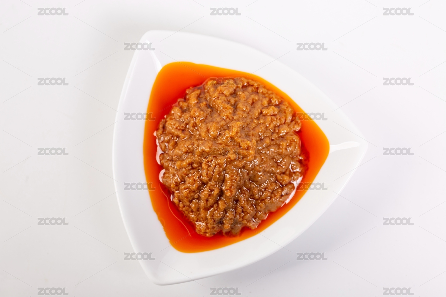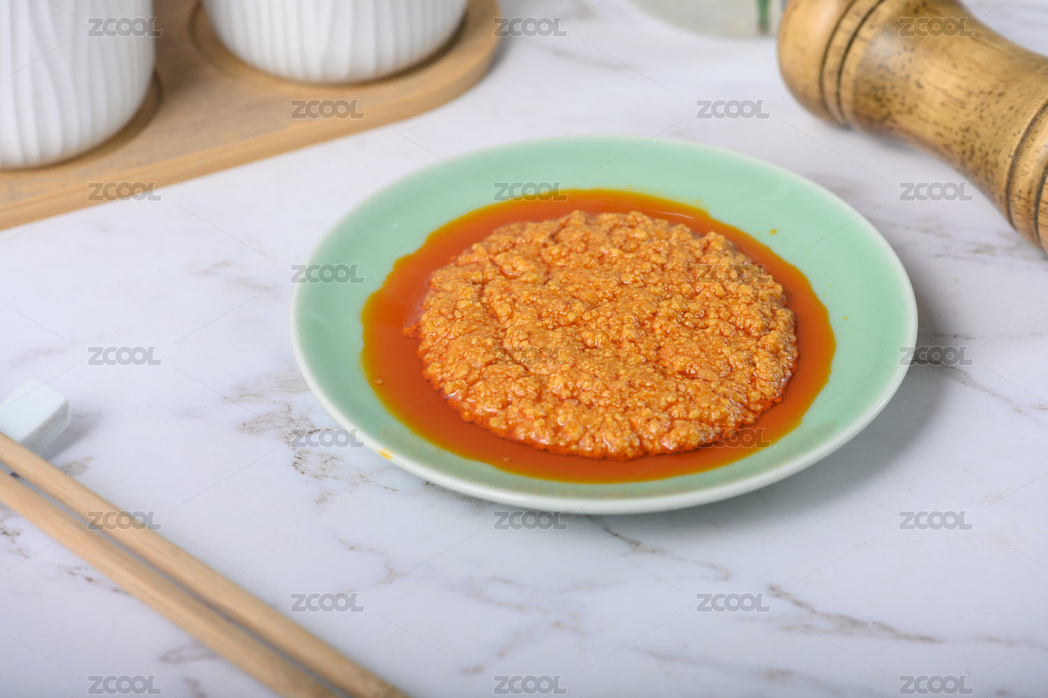 桌面上的盘子里的美味可口的传统豆瓣酱
