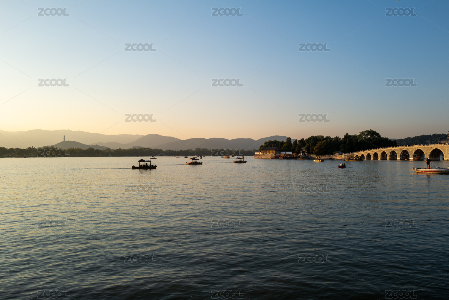 秋日黄昏下的颐和园昆明湖日景