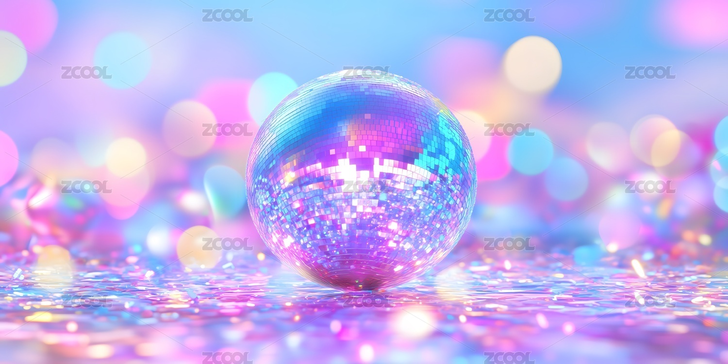彩灯下闪亮迪斯科球特写音乐节舞厅场景插图