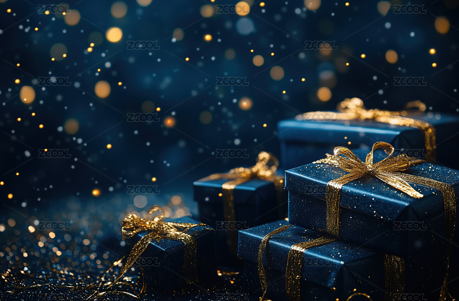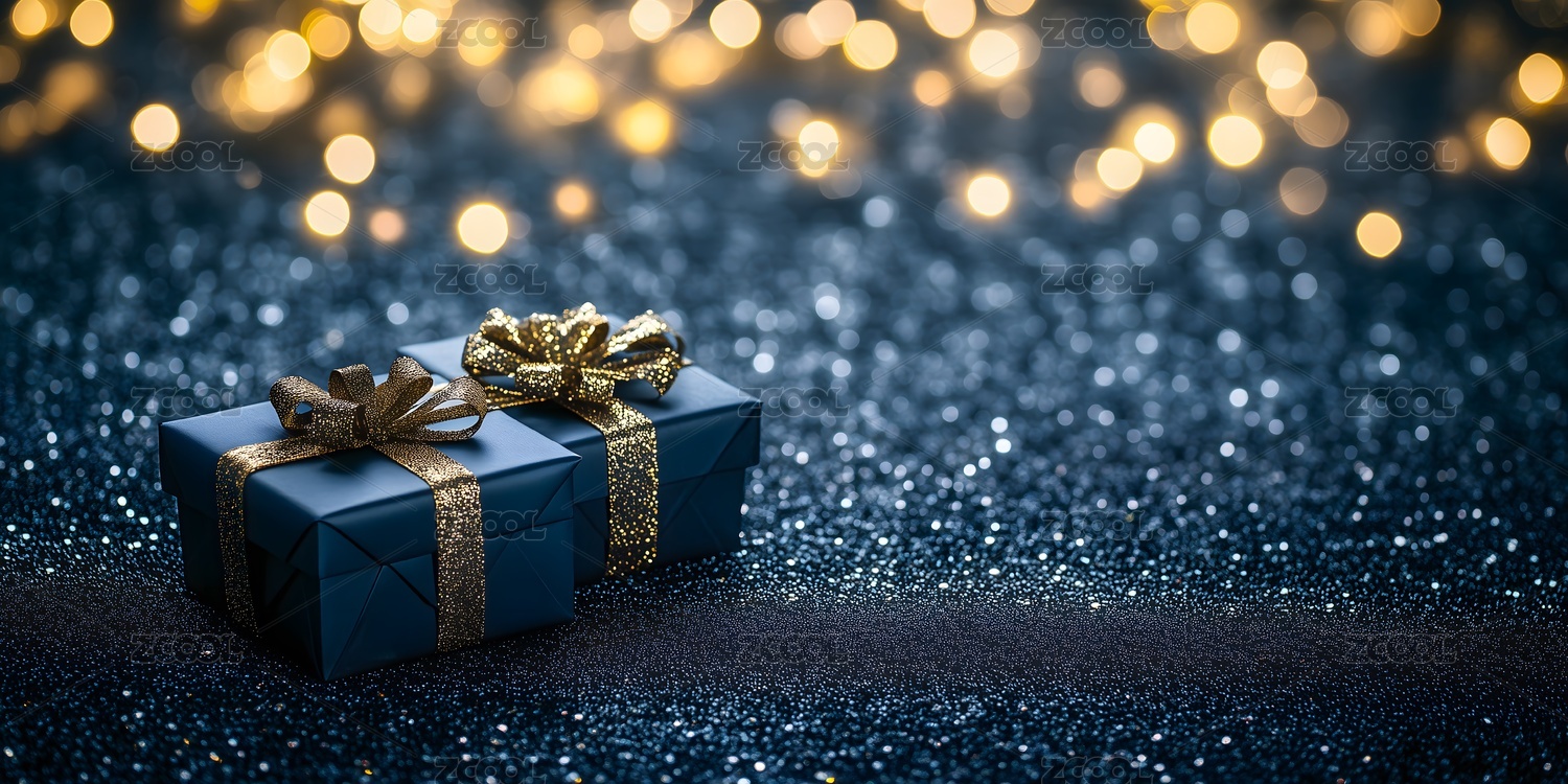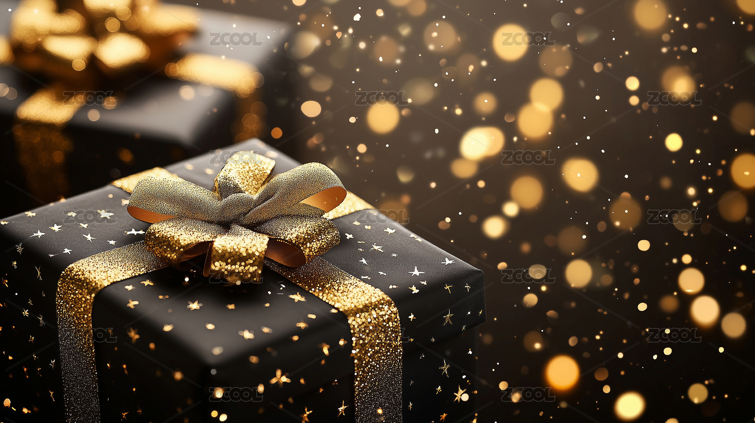 黑色礼盒与金色丝带,奢华闪耀的节日气氛