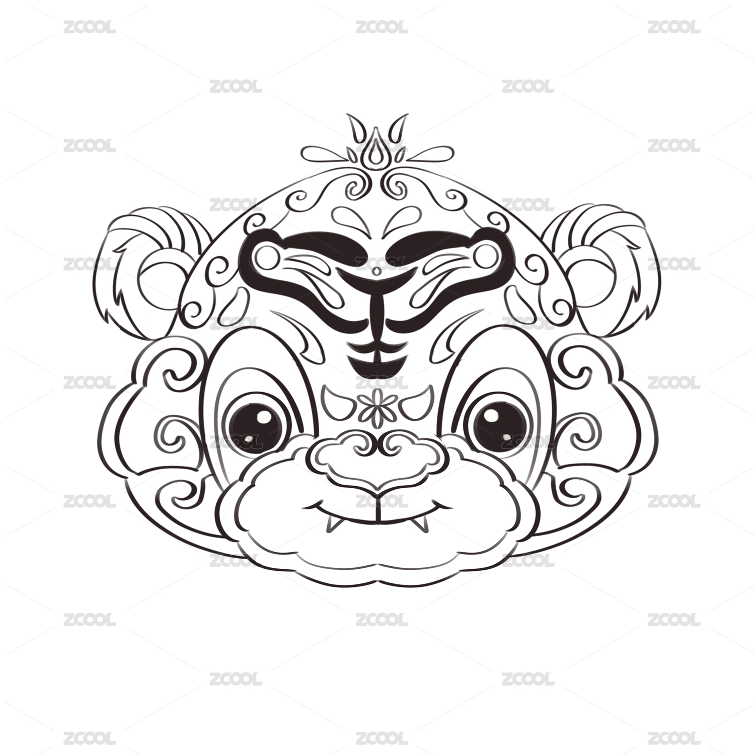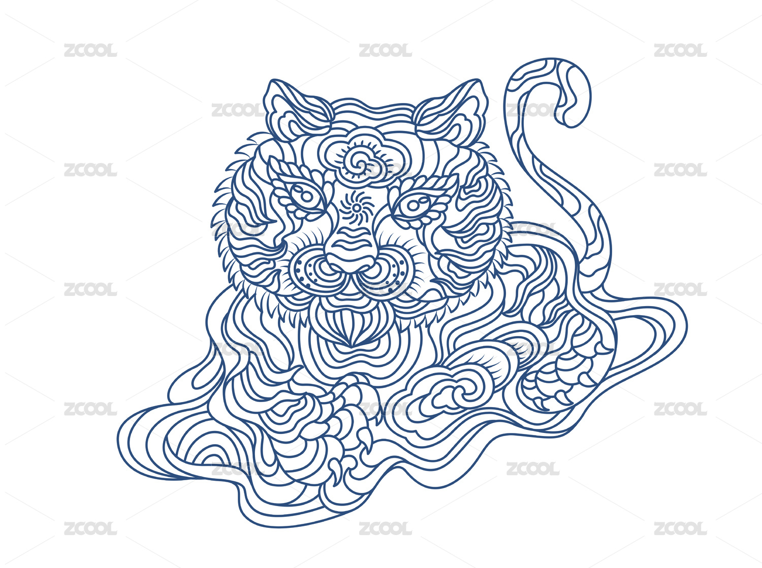 虎生肖图形线条图案