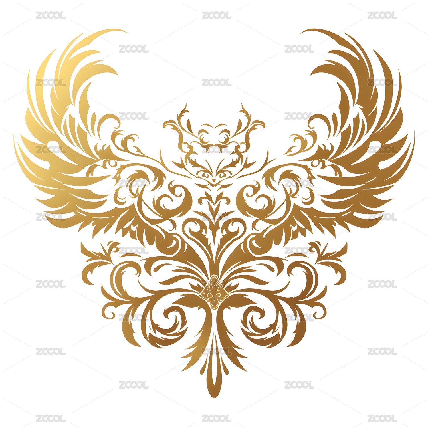 金色线条凤凰祥云牡丹花传统图案