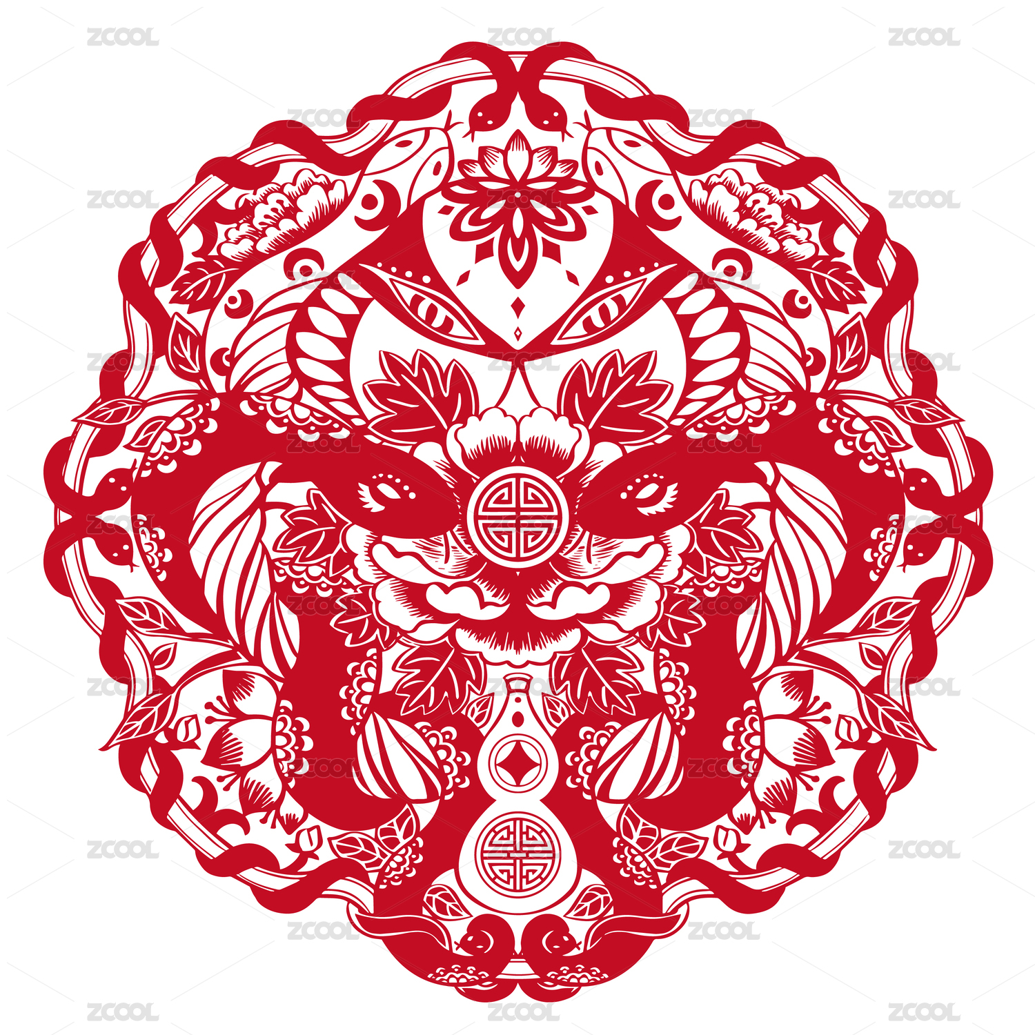 中国传统醒狮 忍冬图纹样式剪纸