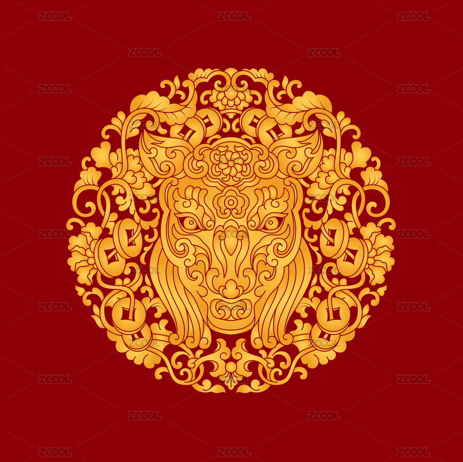 中国传统民族图案祥禽瑞兽东方神兽纹样雄狮