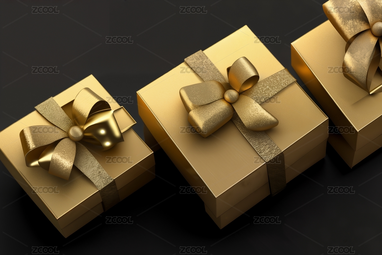 黑色礼盒与金色丝带的节日场景