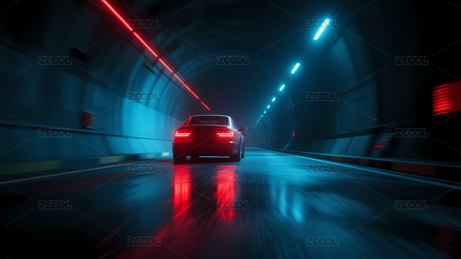 未来科技隧道中的汽车主题