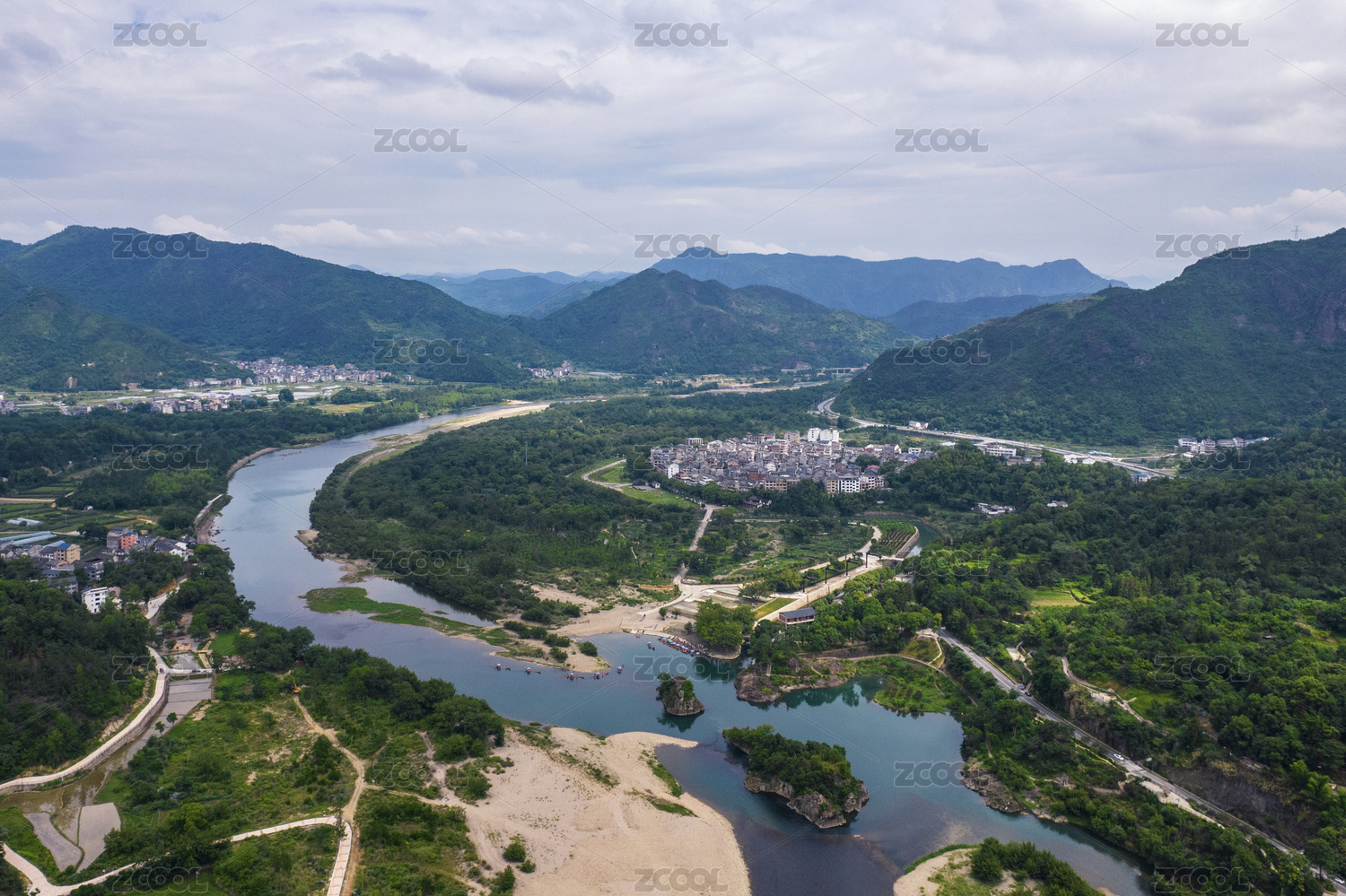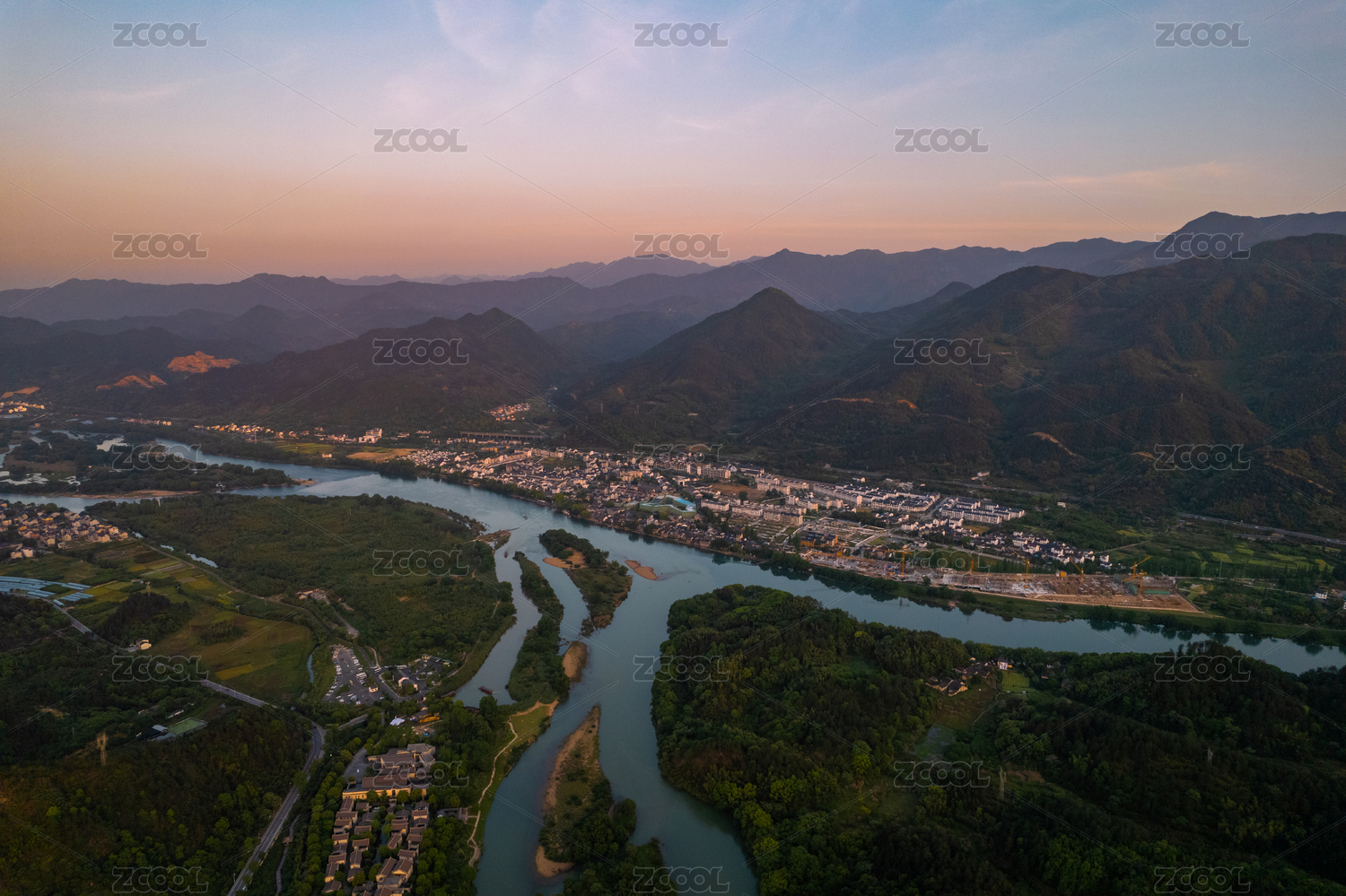 航拍中国浙江丽水傍晚时分的古堰画乡