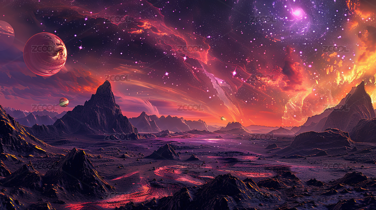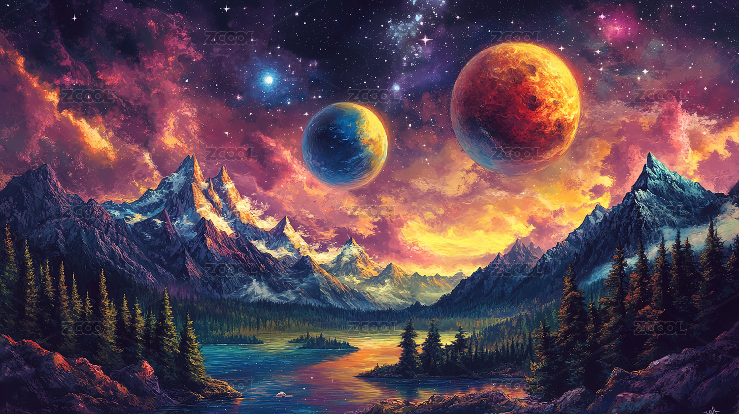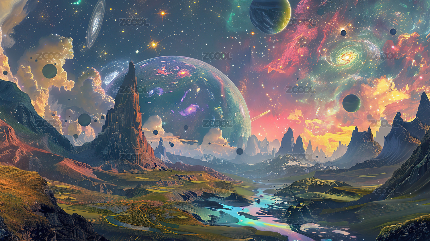 AI数字艺术,户外,地形,风景,高山,天空,背景,云,无人,自然