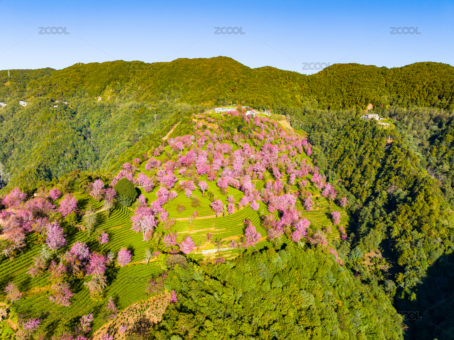 云南大理无量山樱花谷阳光中的樱花美景