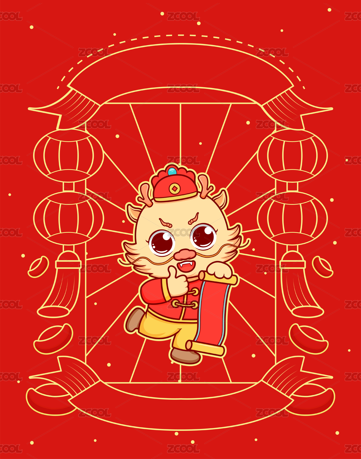 侧身坐着拿着玉如意的可爱小龙 适量风格插