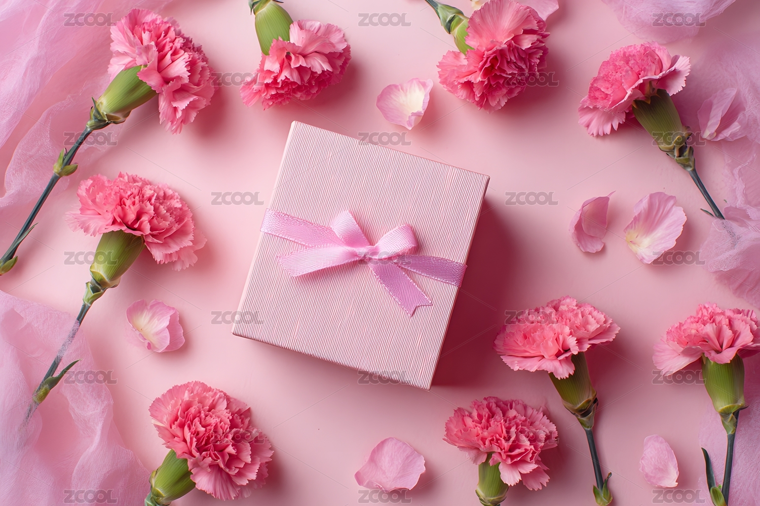 精美礼盒和康乃馨鲜花