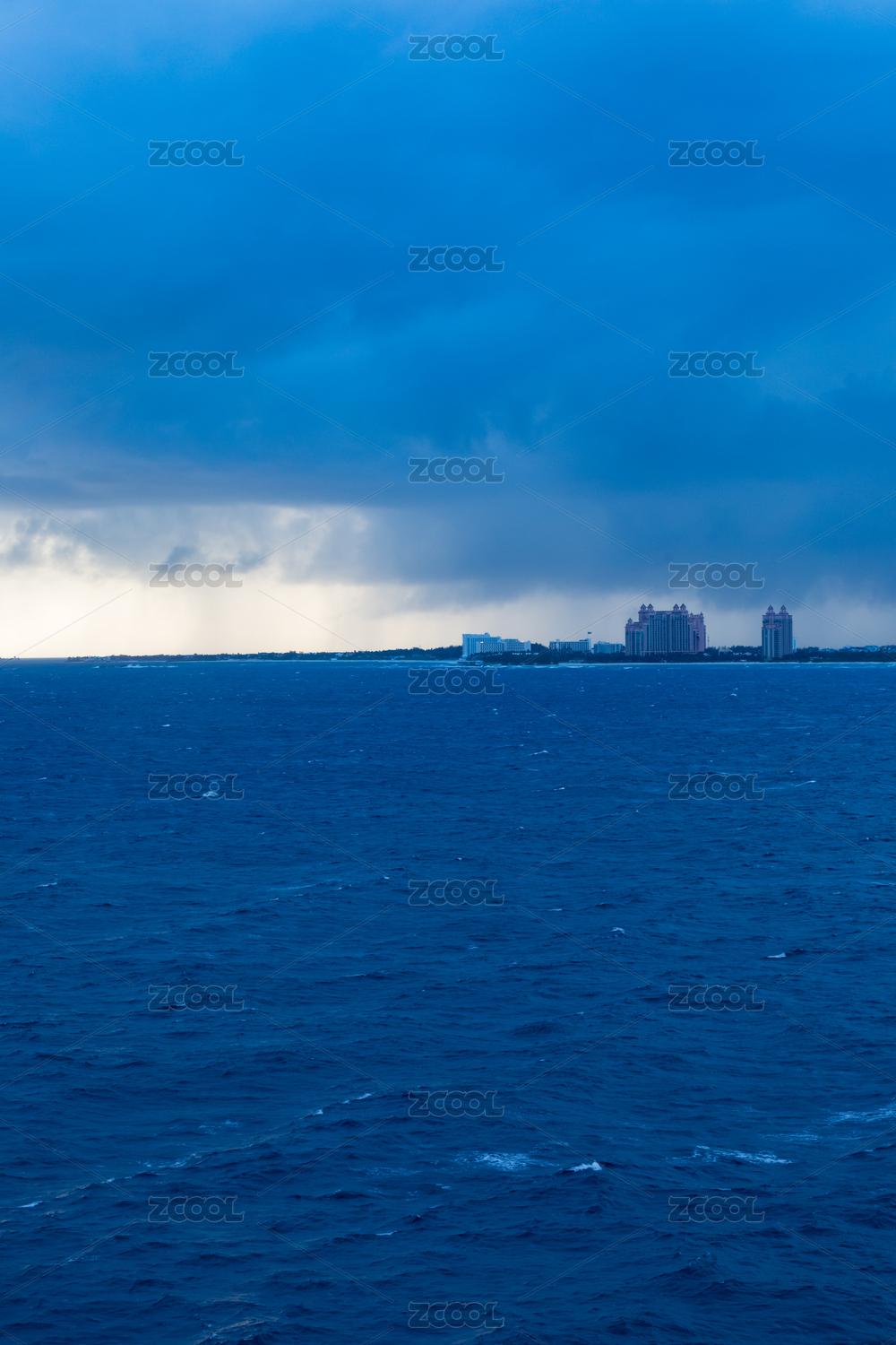 从加勒比海远眺拿骚天堂岛上亚特兰蒂斯酒店