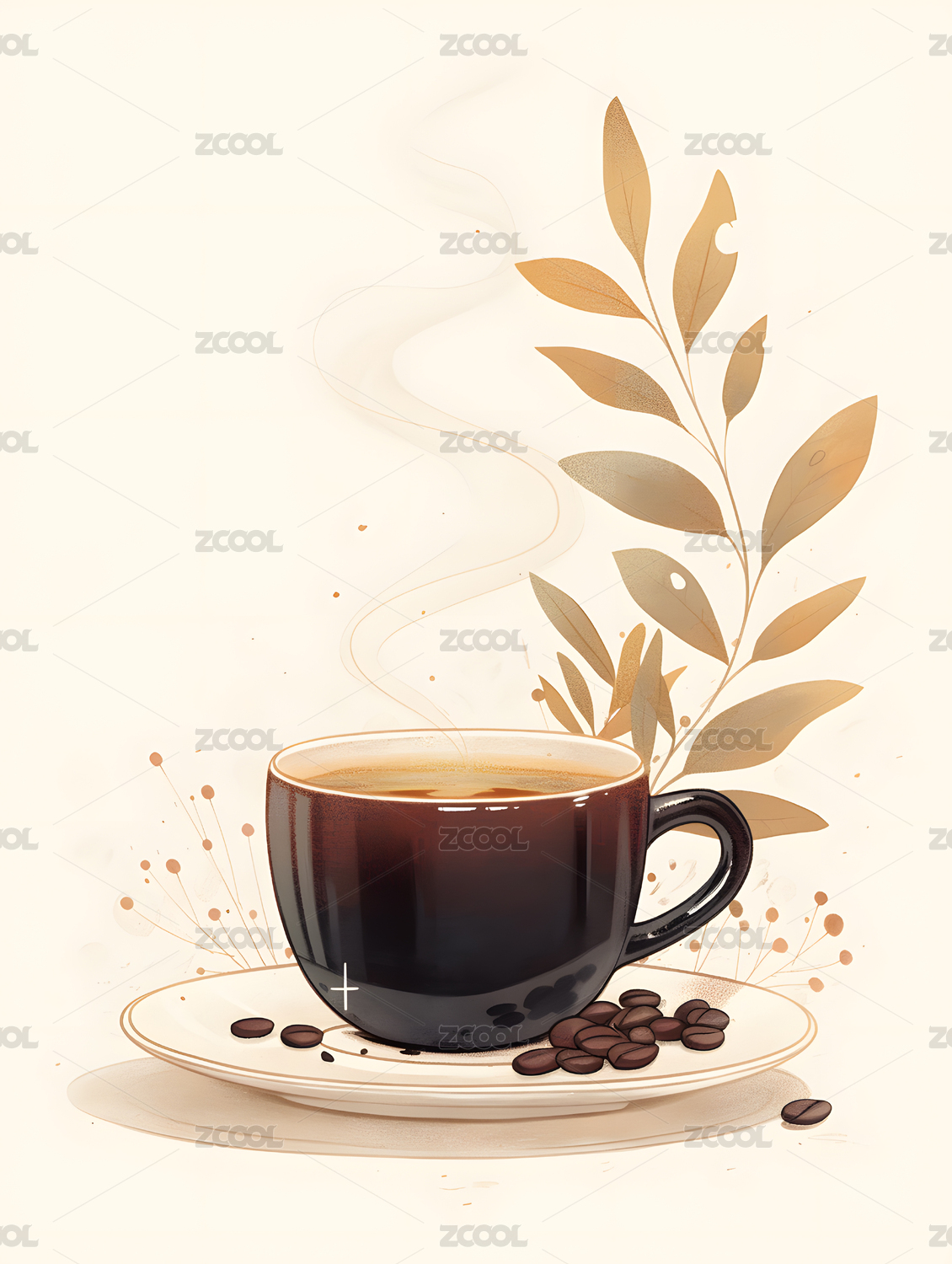 黑底桌面冒热气的一杯茶热饮3D立体插画