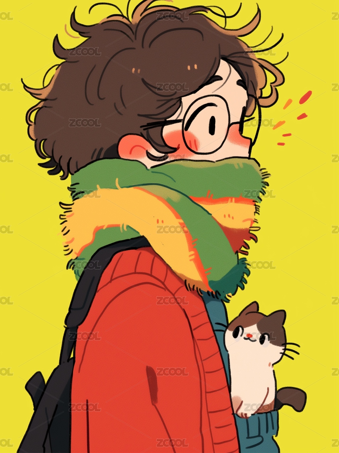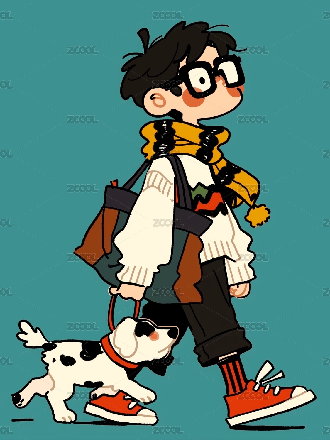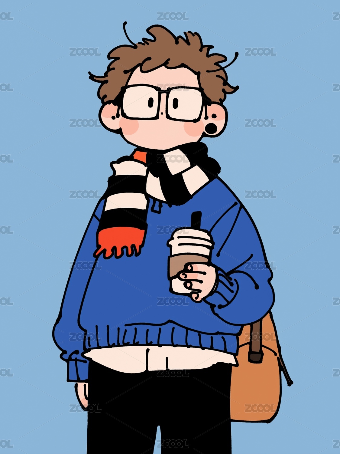 ok,男孩,涂鸦风,插画,简笔画,可爱