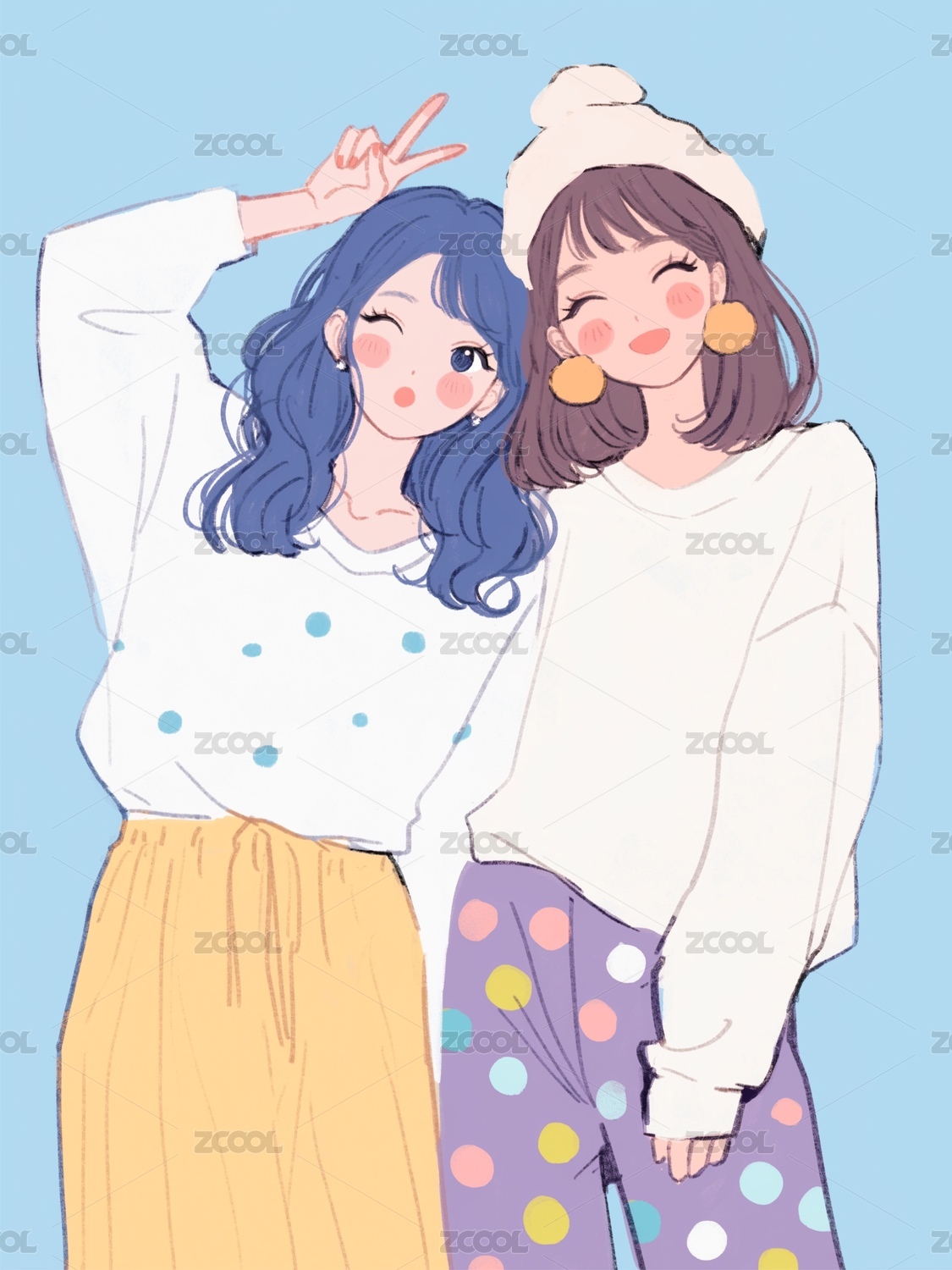 自拍的姐妹插画