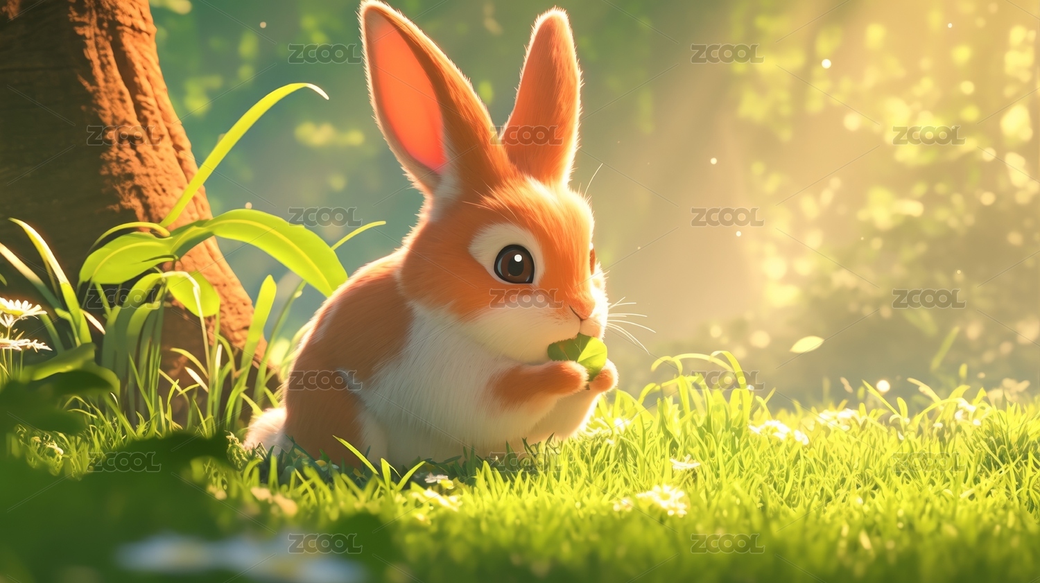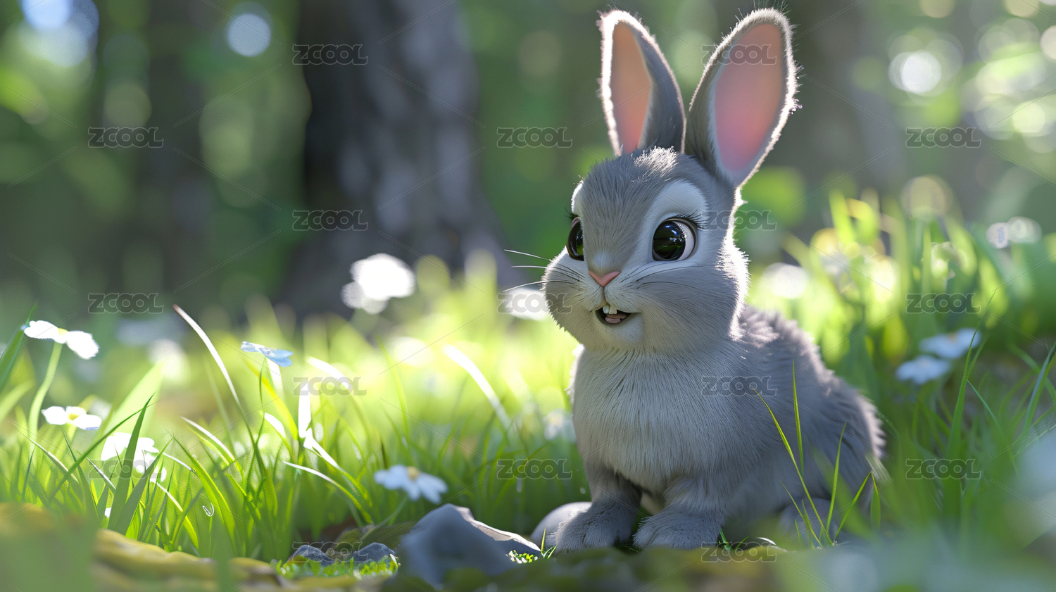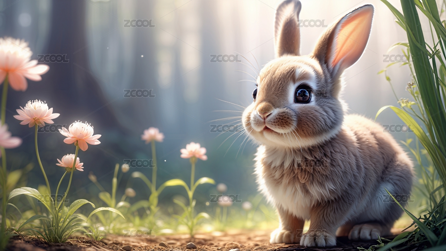 动物,写实,绘画,唯美,可爱,温馨,快乐,插画,AIGC202401,兔子