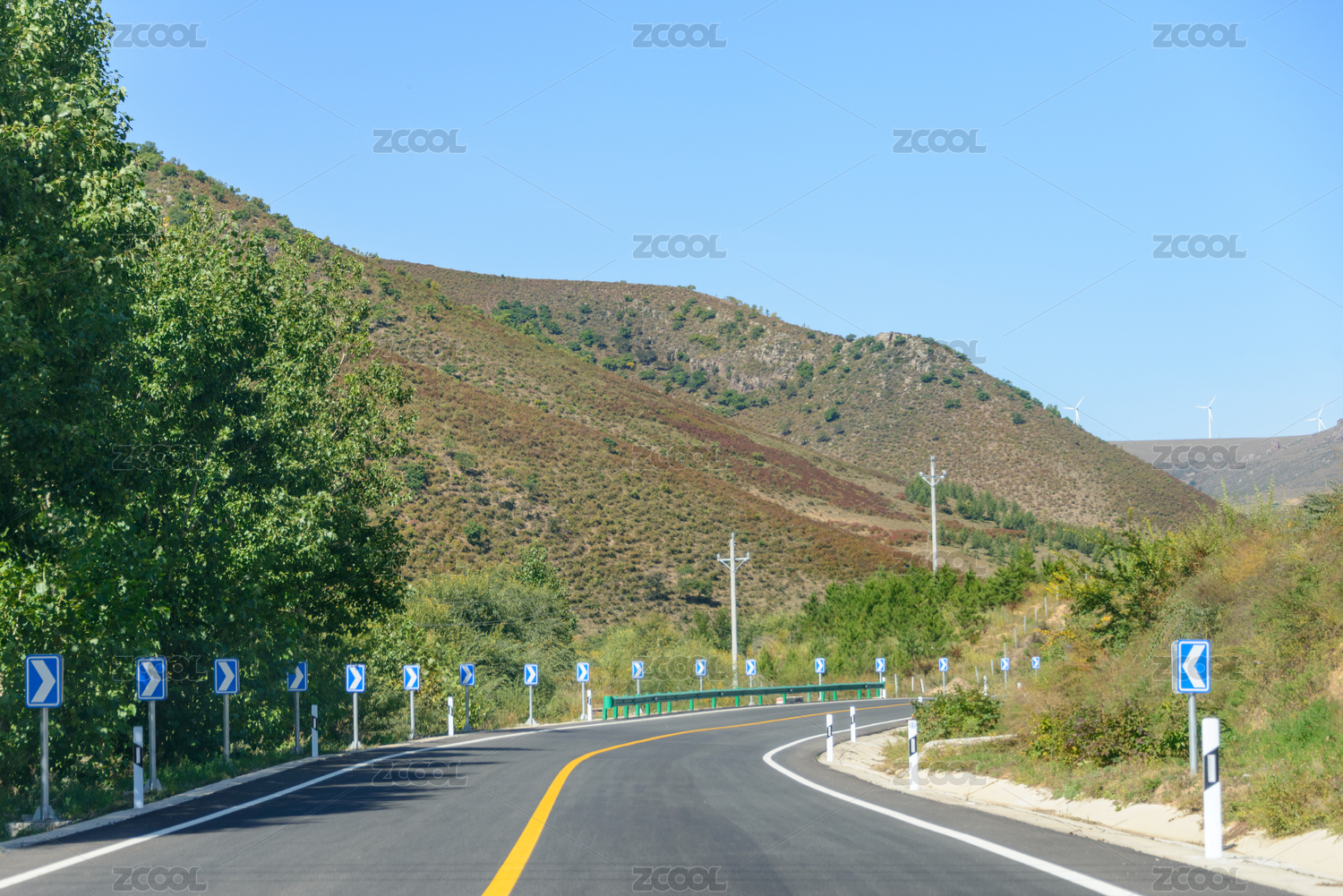 山东枣庄山亭区山坡上曲折蜿蜒的公路