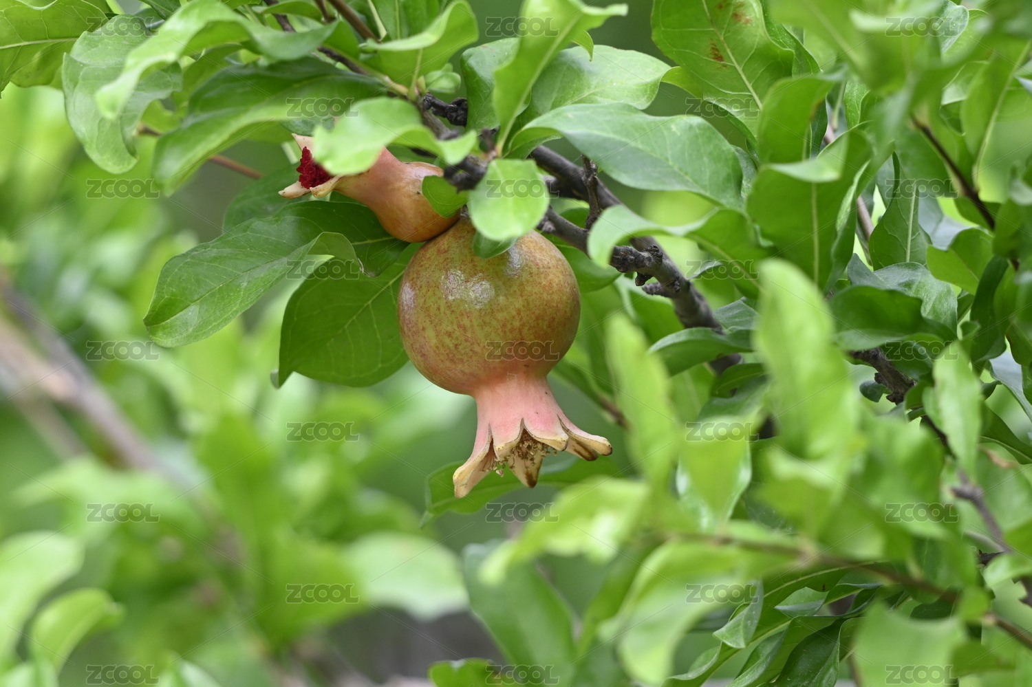 山东枣庄冠世榴园石榴花和幼果相映成景
