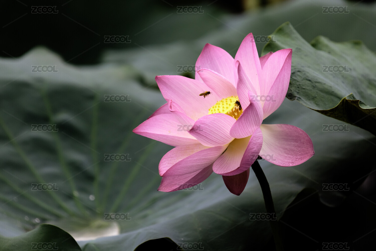 粉红色莲花盛开于绿叶间