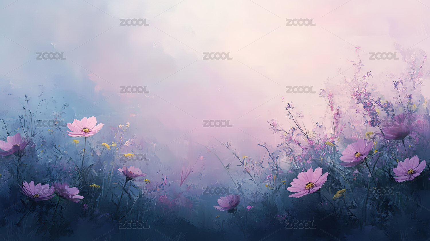 水彩,绘画,蓝色,黄色,紫色,花朵,渐变,抽象,几何,图形