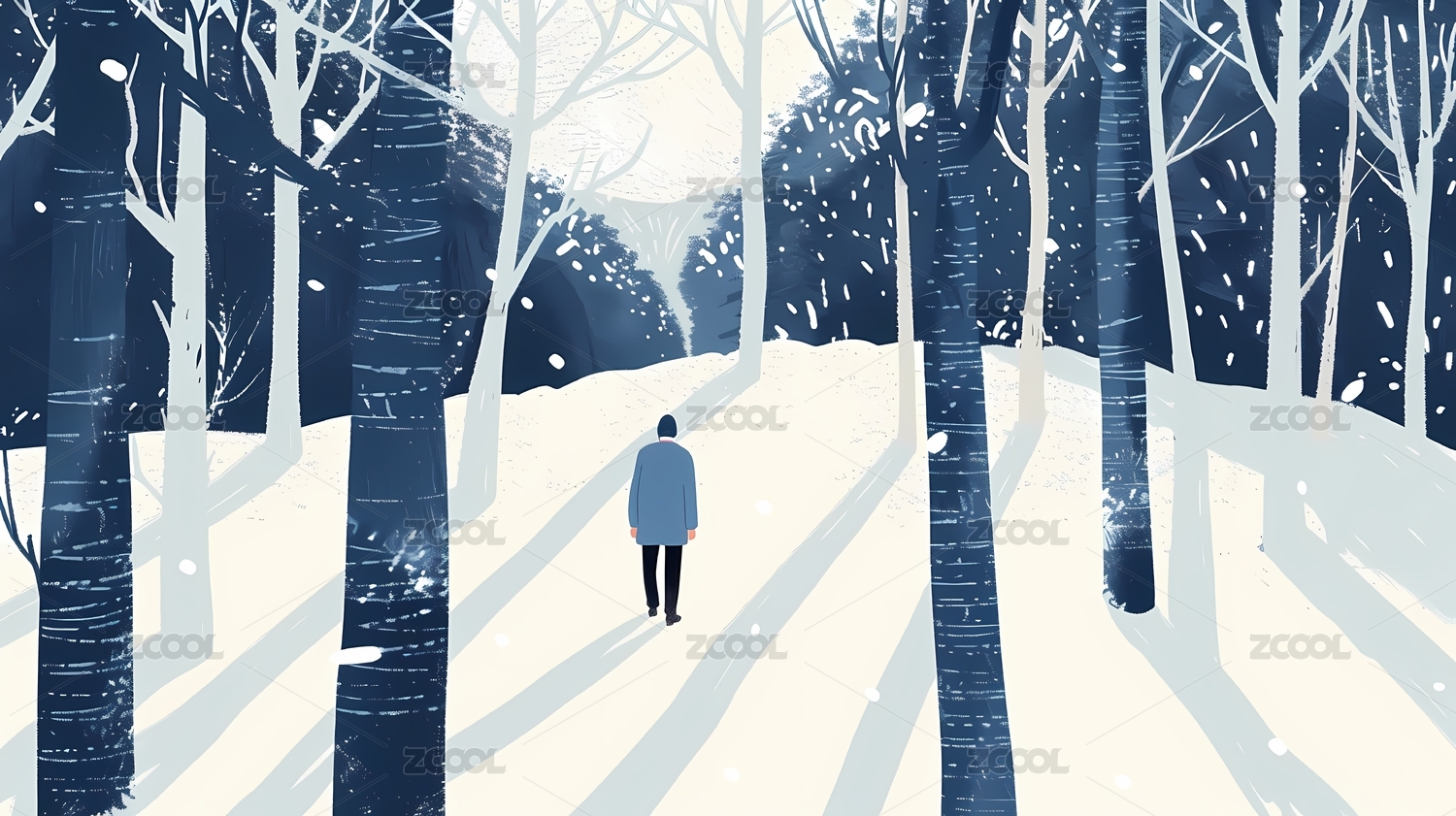 冬季,雪,森林,人物,场景,植物,白色,树,简约,设计