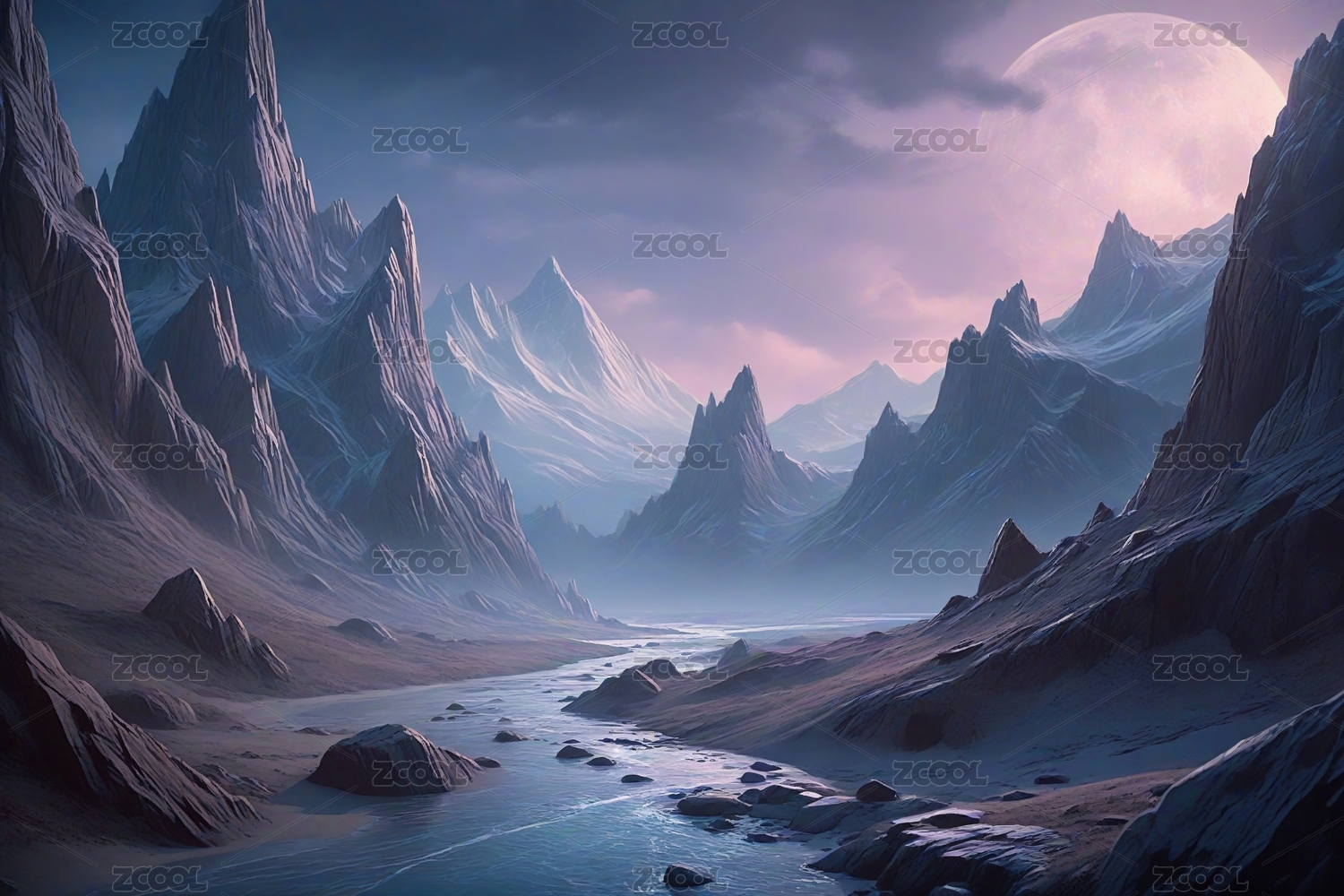 数码天堂般的冬季与山脉场景图形海报背景