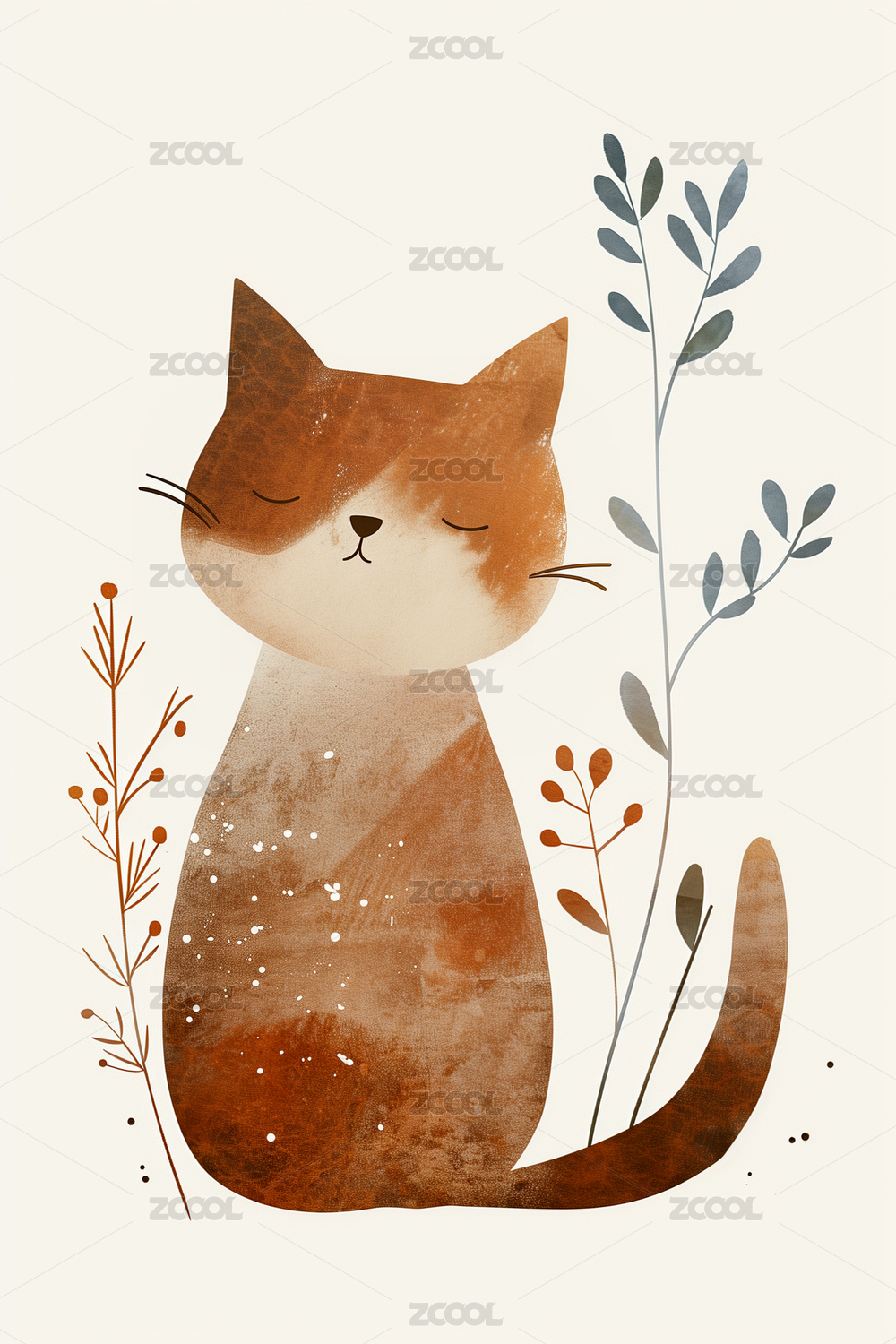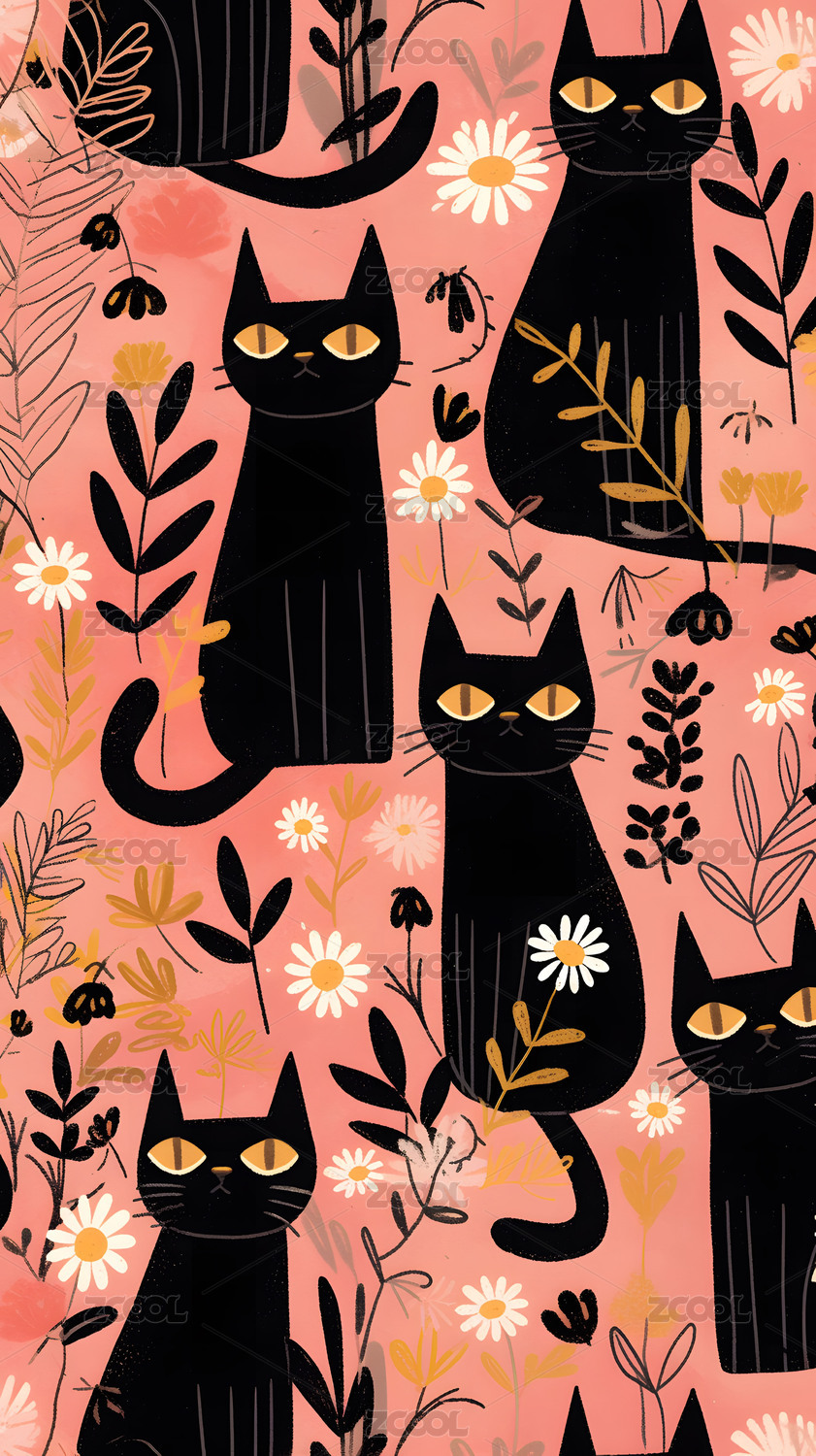 猫咪与植物花纹
