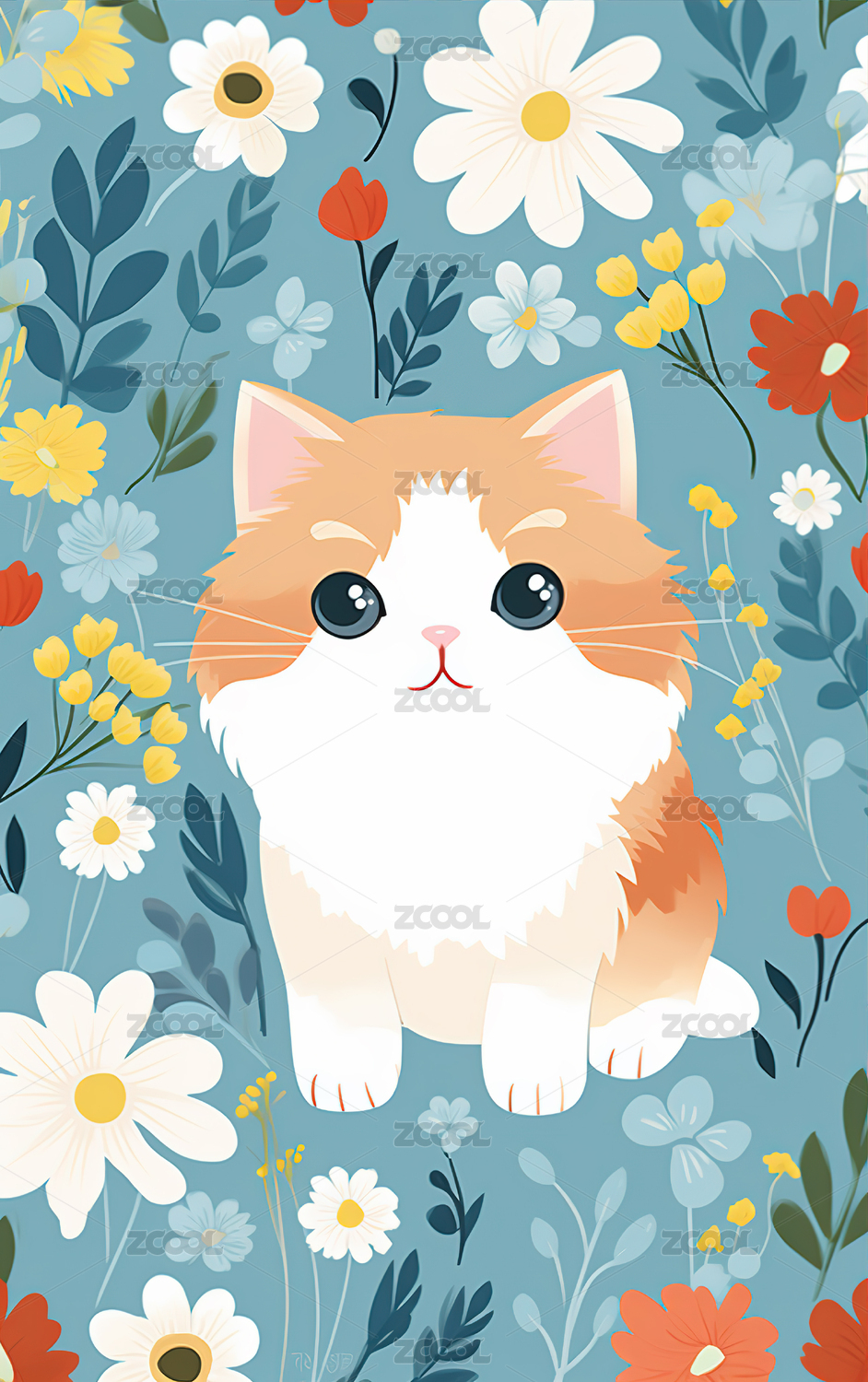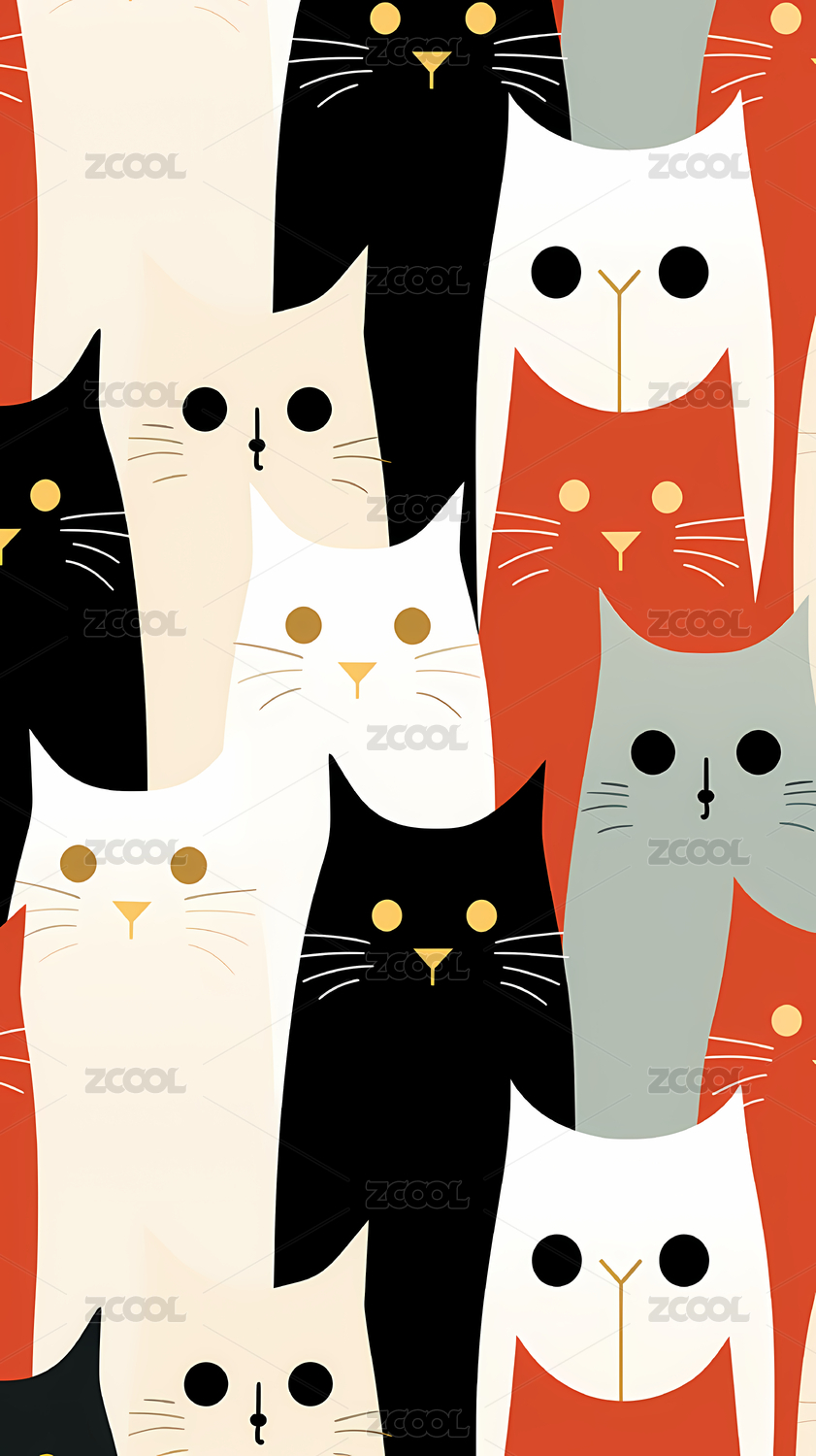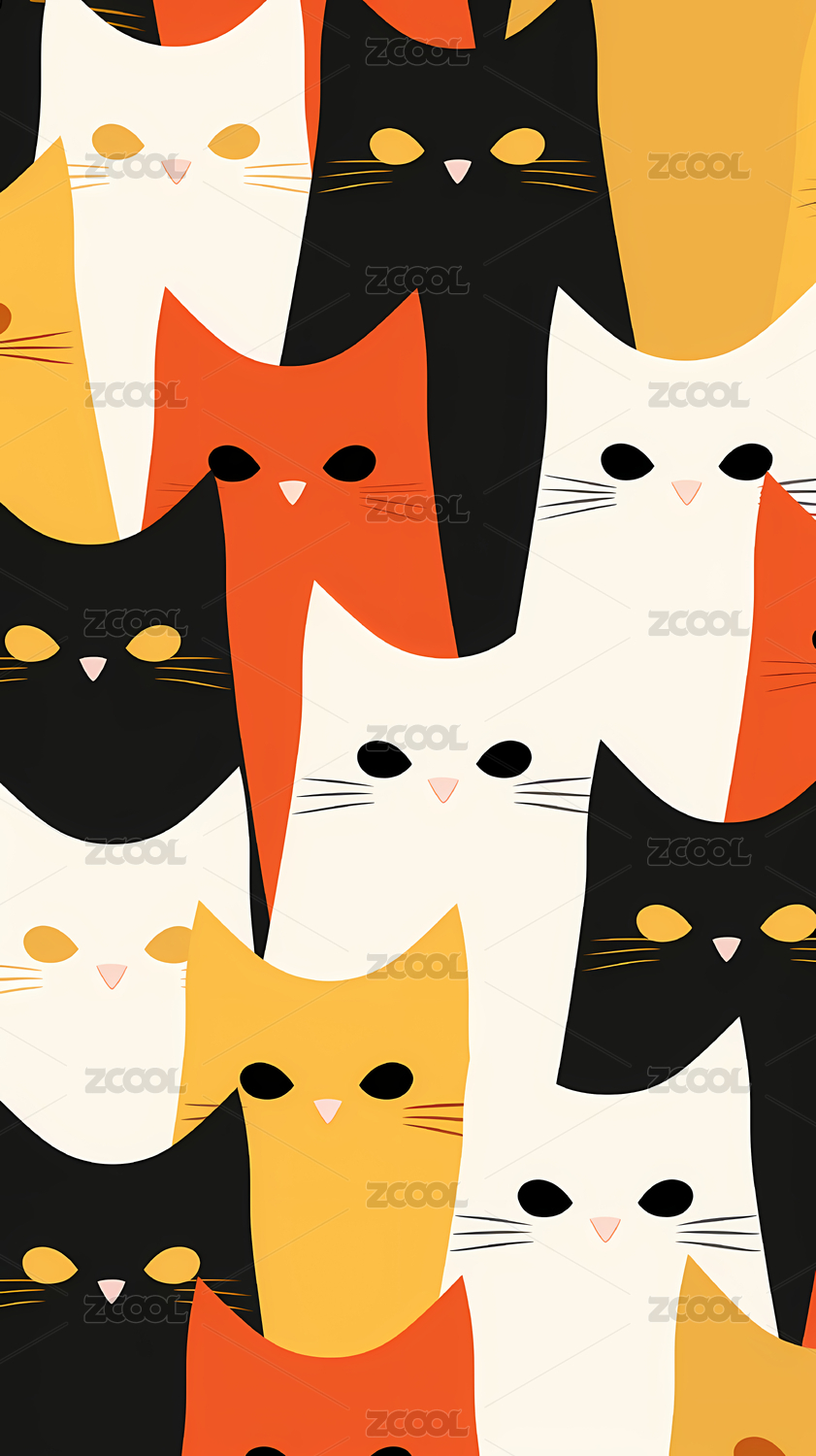 可爱的平面猫咪竖屏背景图