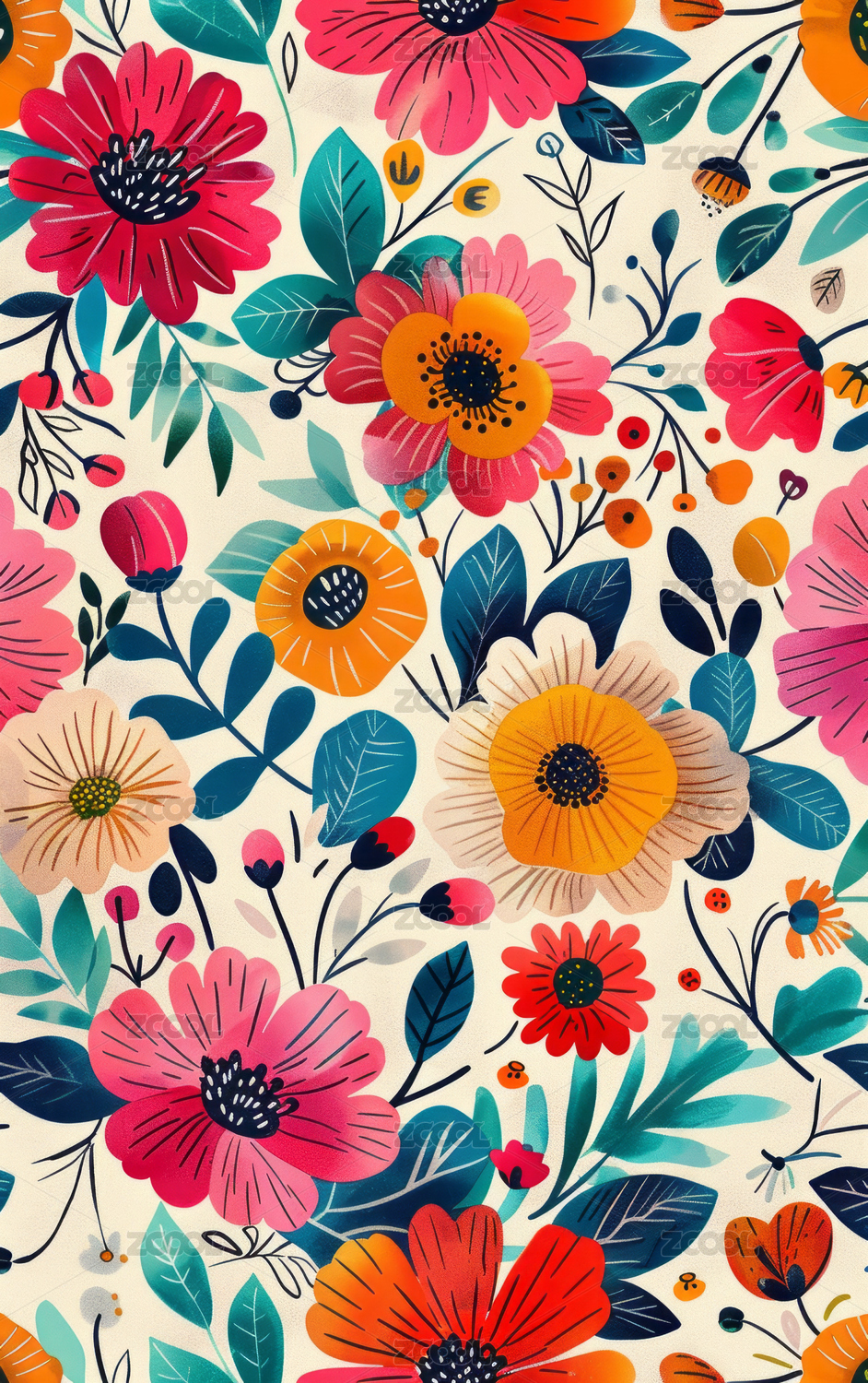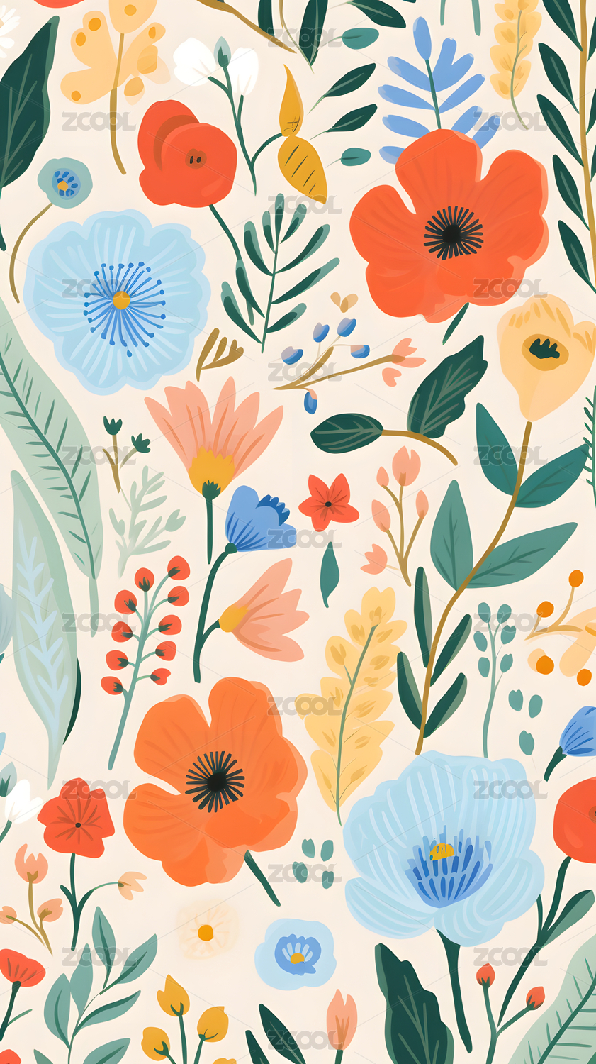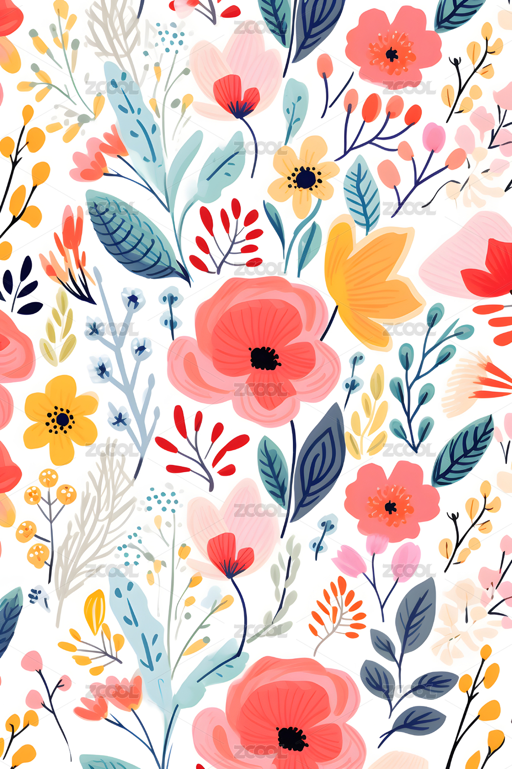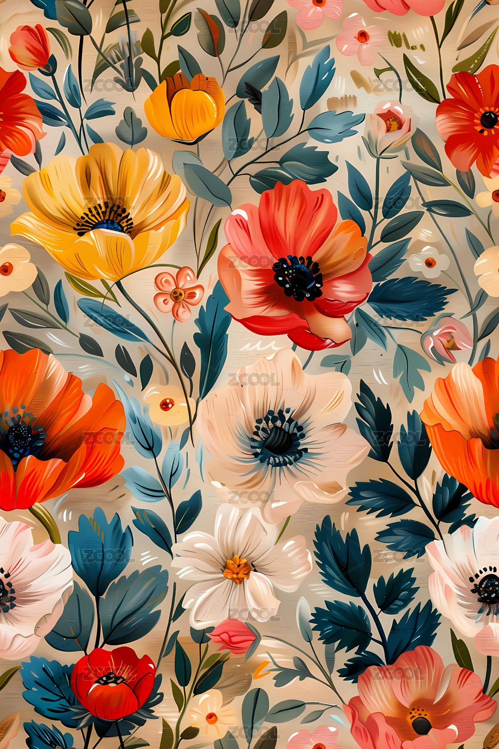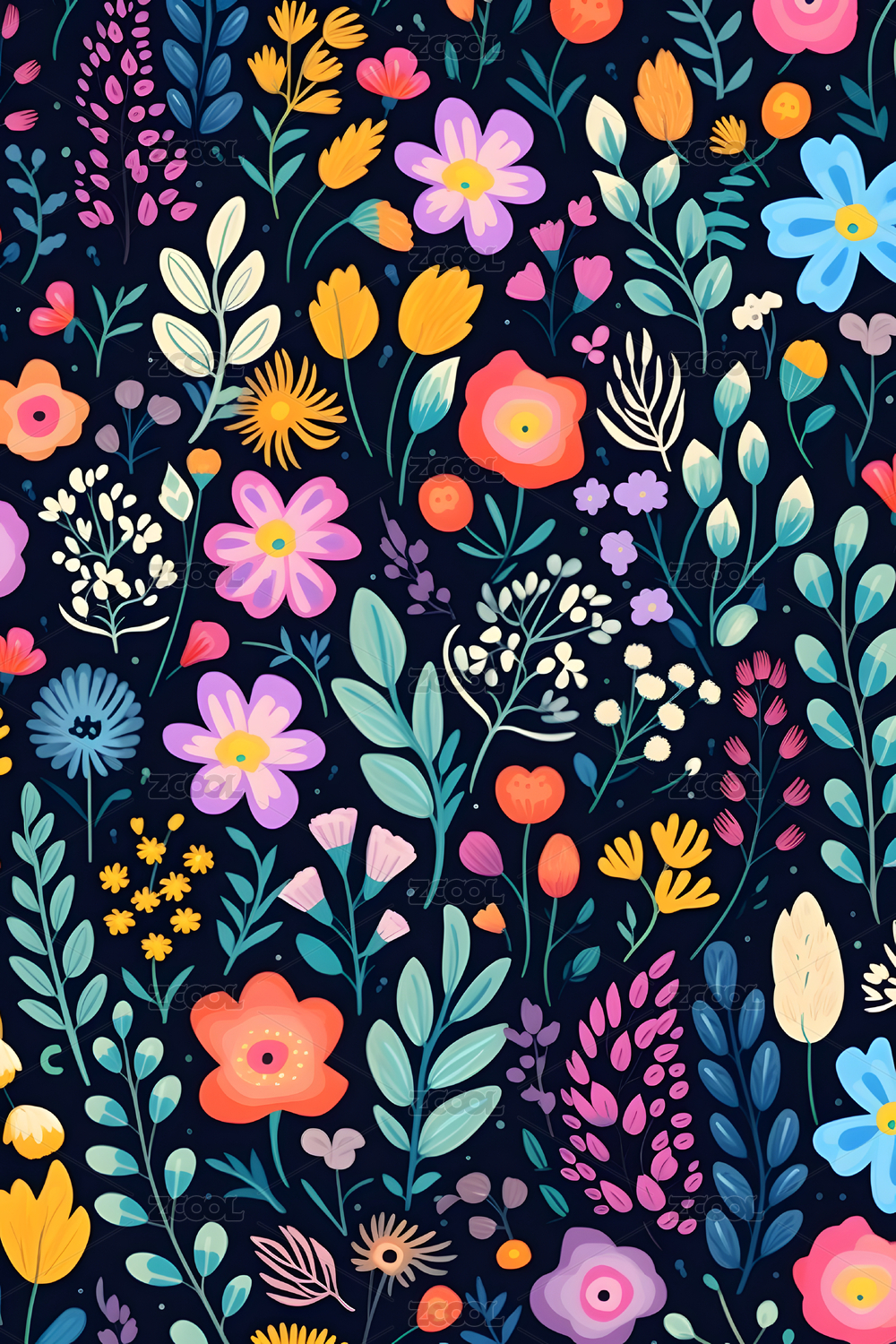 数码复古彩色梦幻花朵装饰抽象海报背景