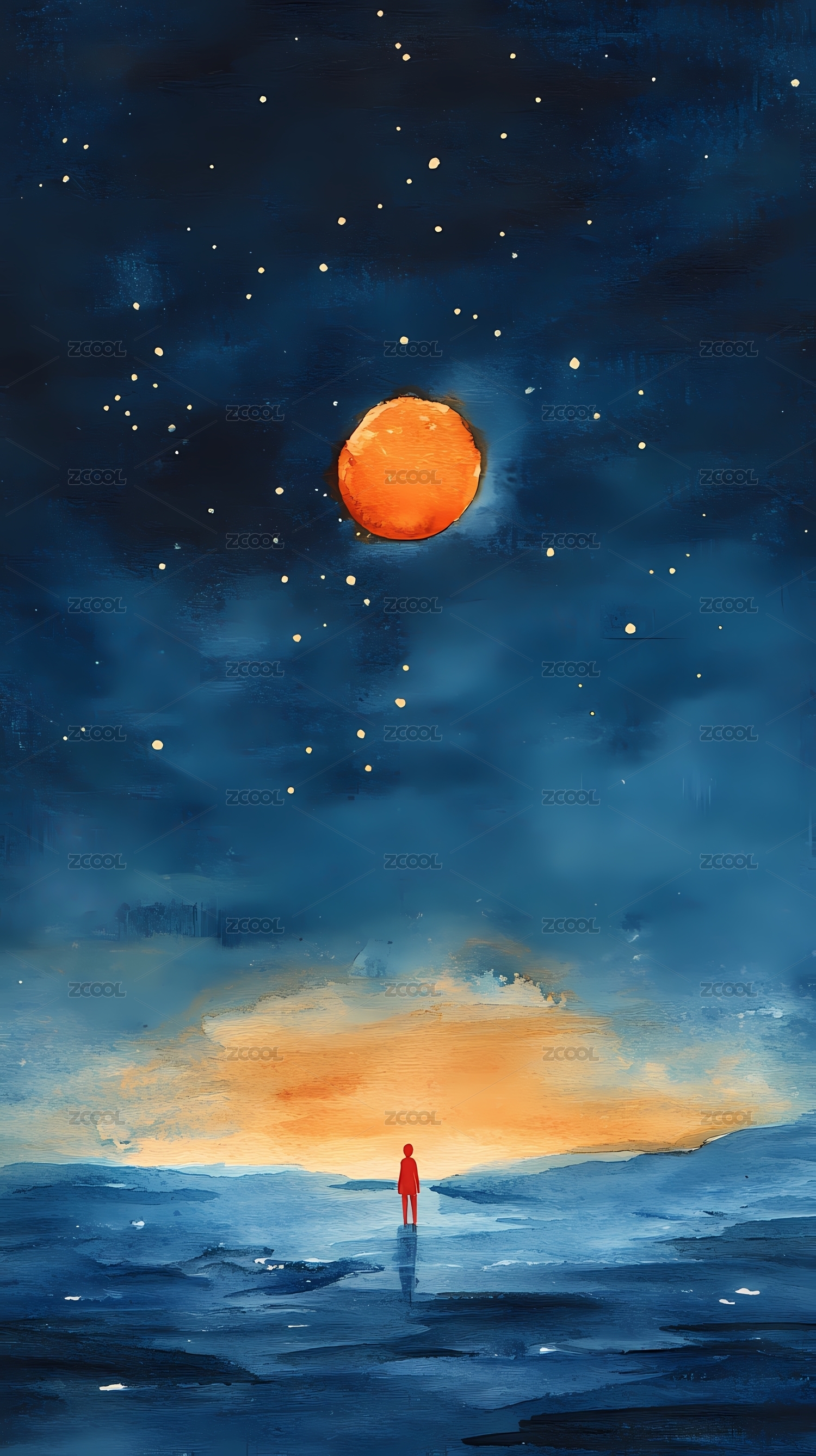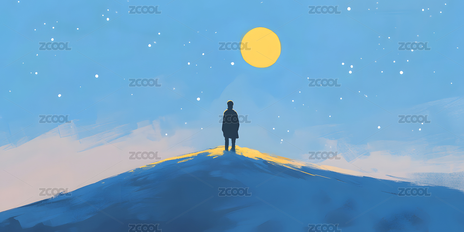 月亮天空人物插画海报背景
