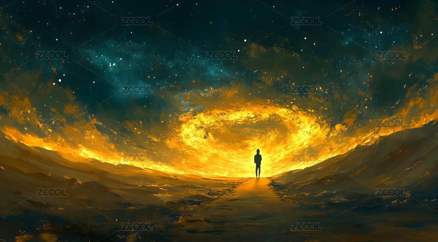 星空下孤独的人影