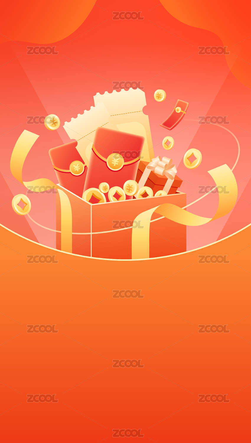 红色礼盒红包金币活动奖励