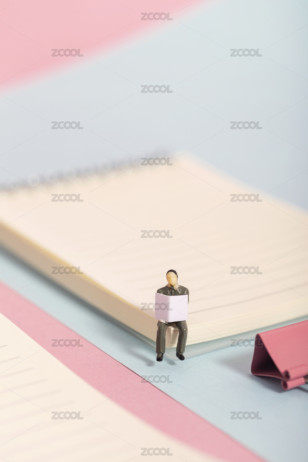 微缩创意马卡龙色书本上阅读看报看书的人群
