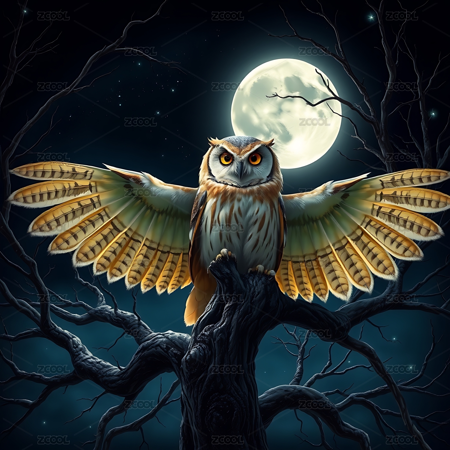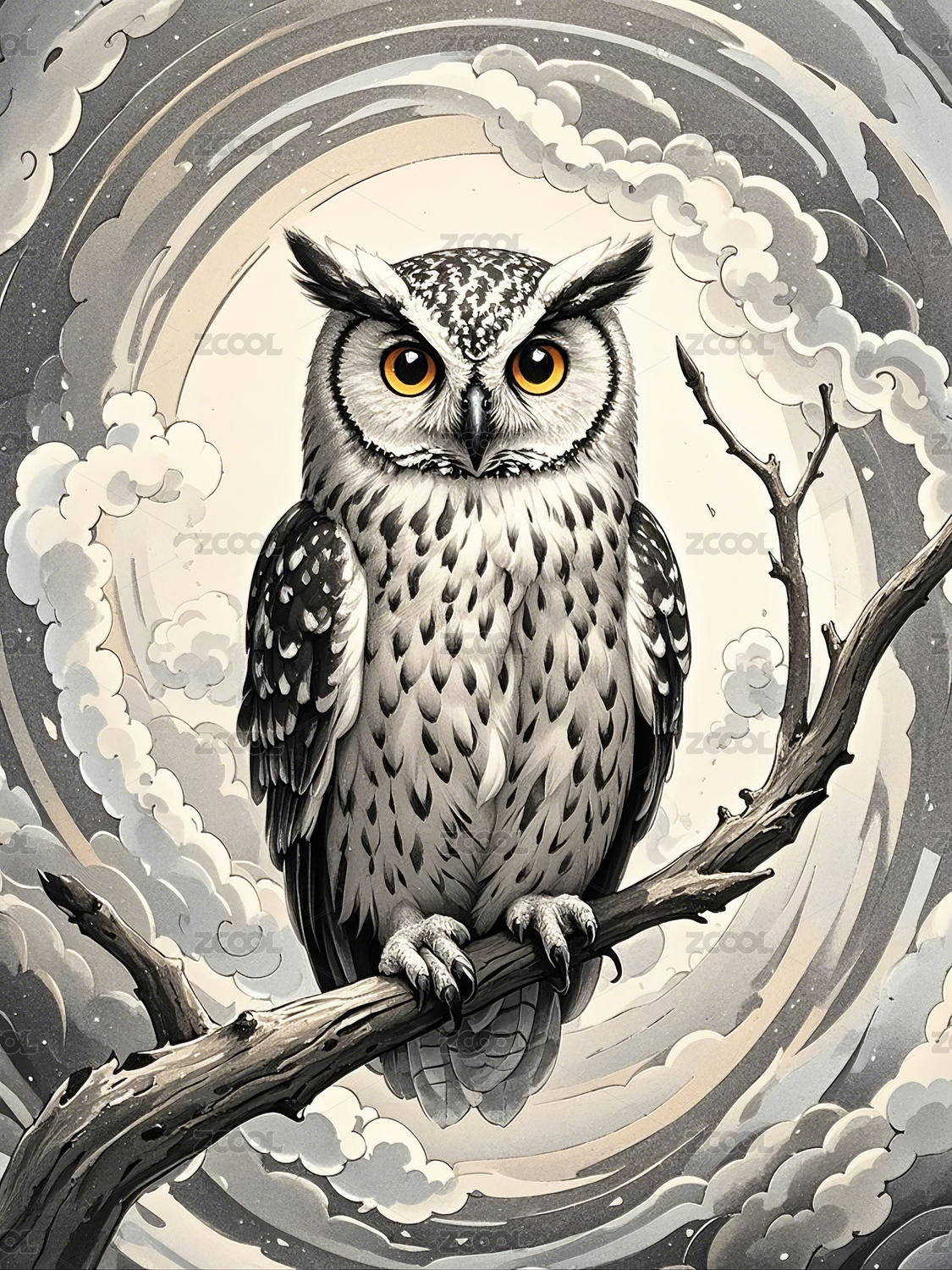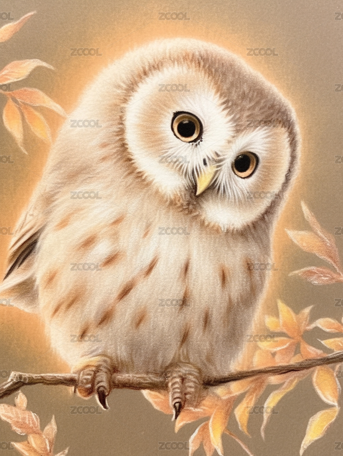 在丛林枝头上站立的卡通猫头鹰头像插画