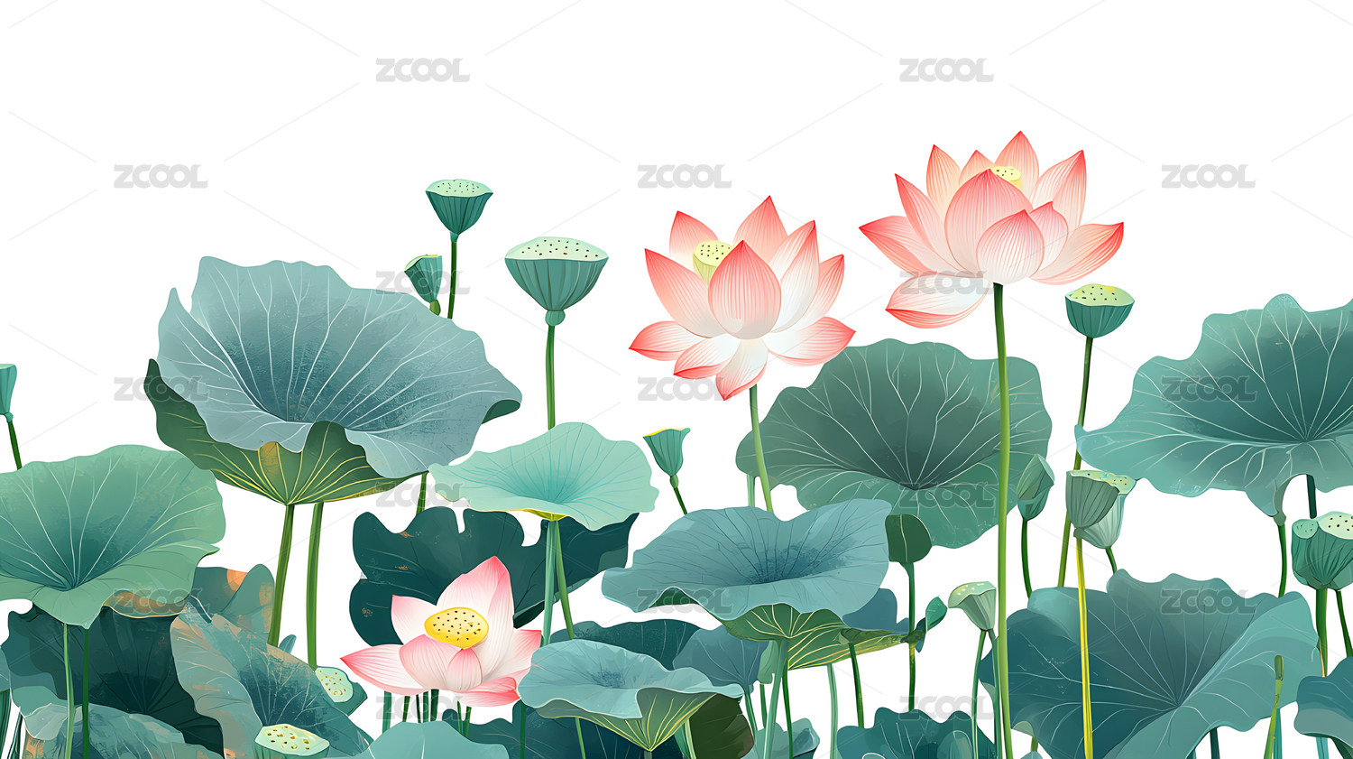 盛开的荷花与荷叶图案背景图