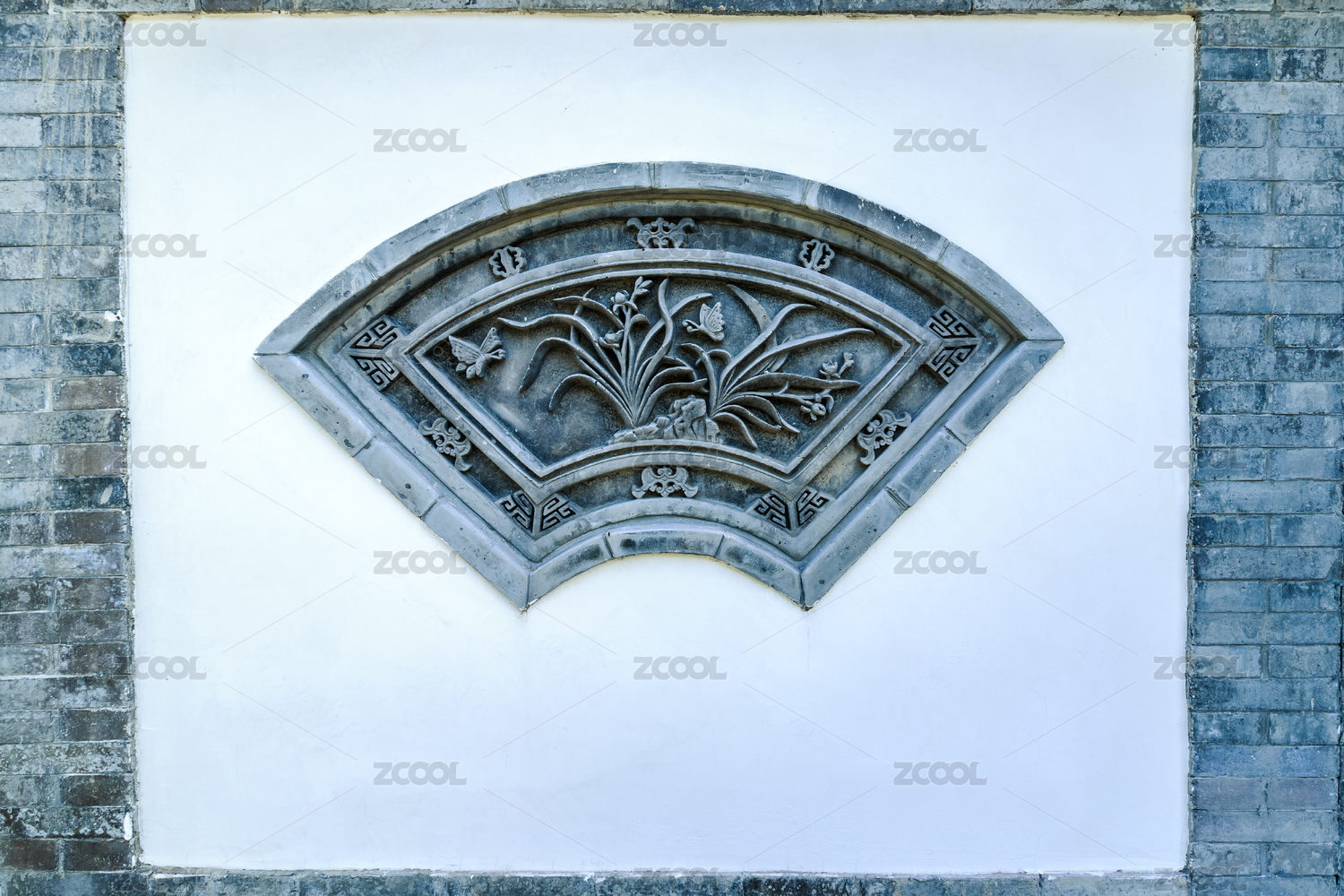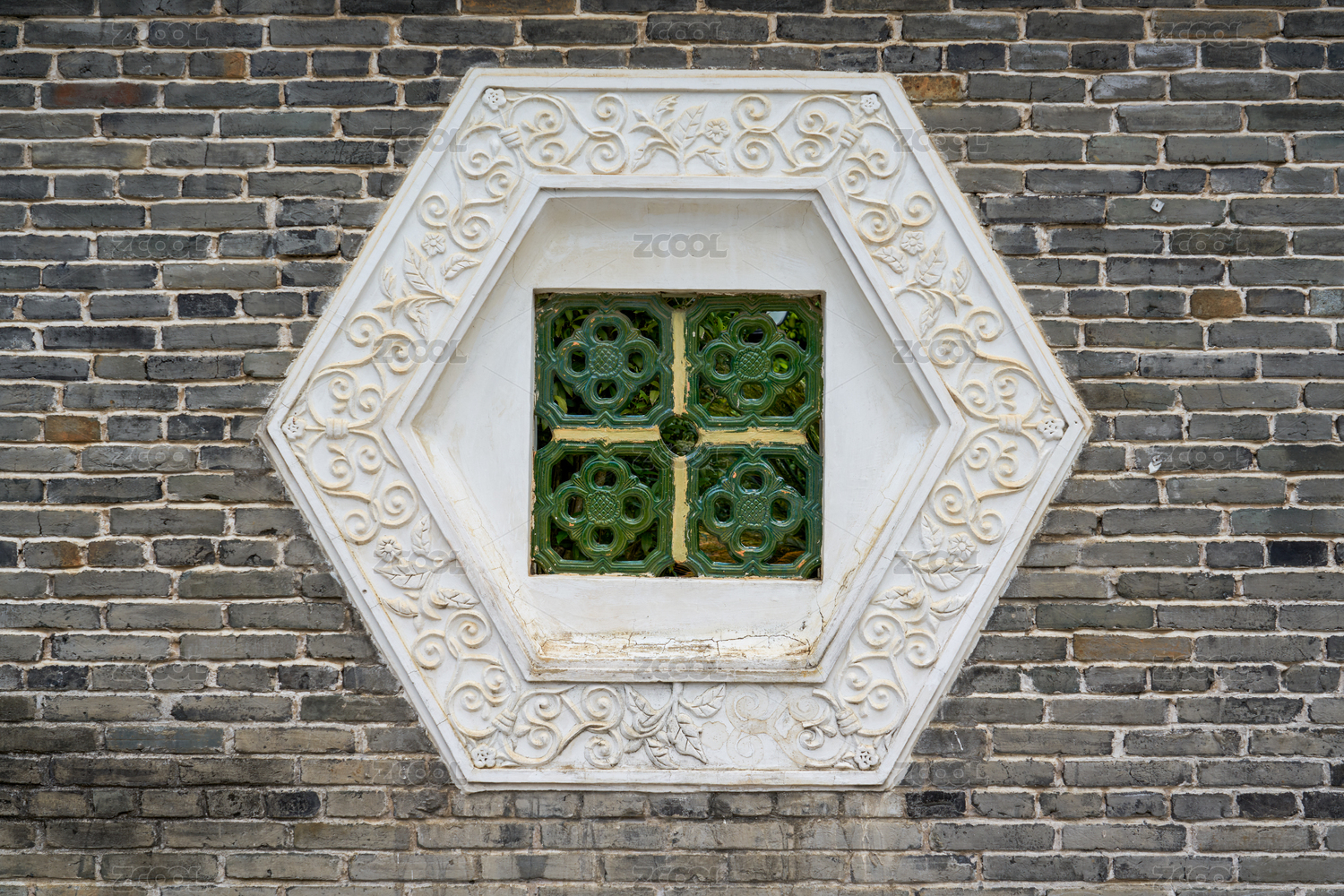 中国广东省佛山祖庙万福台墙壁上的镂空花格窗石窗