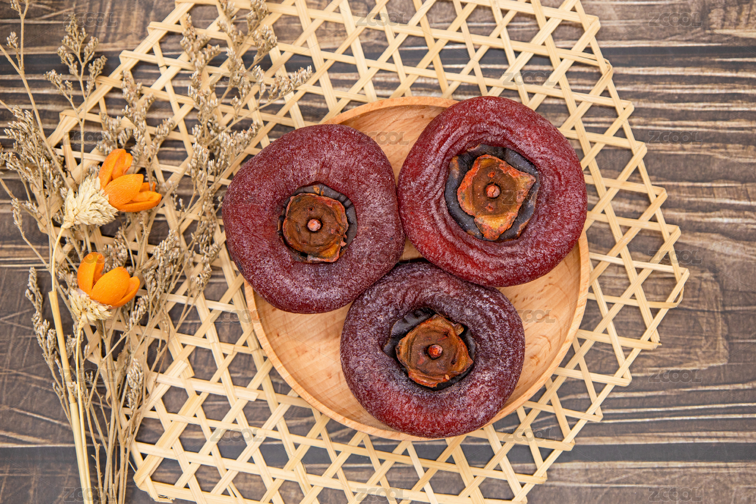 柿饼,柿子饼,柿子,晒干,吃的,食物,食品,盘子,碟子,木桌