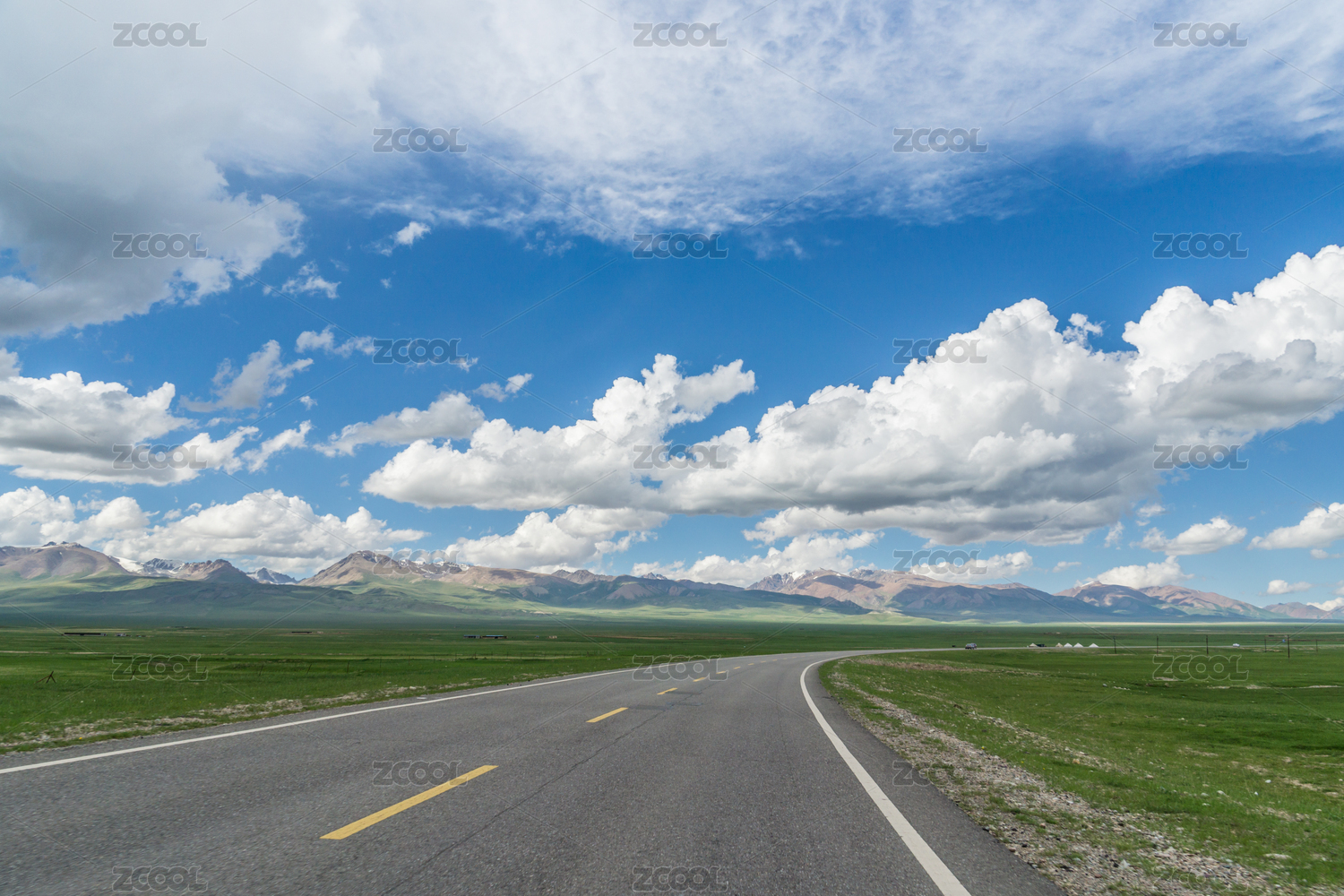 中国新疆夏季蓝天白云下G217独库公路沿途高山草原