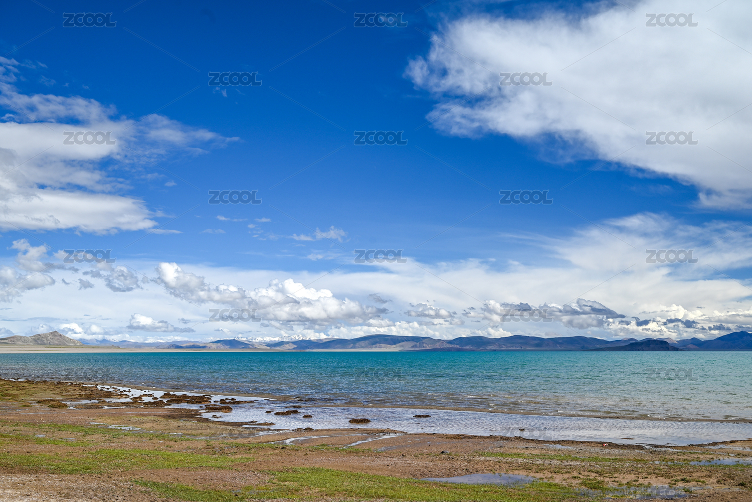 中国西藏扎日南木错 晴天下的蓝色湖水