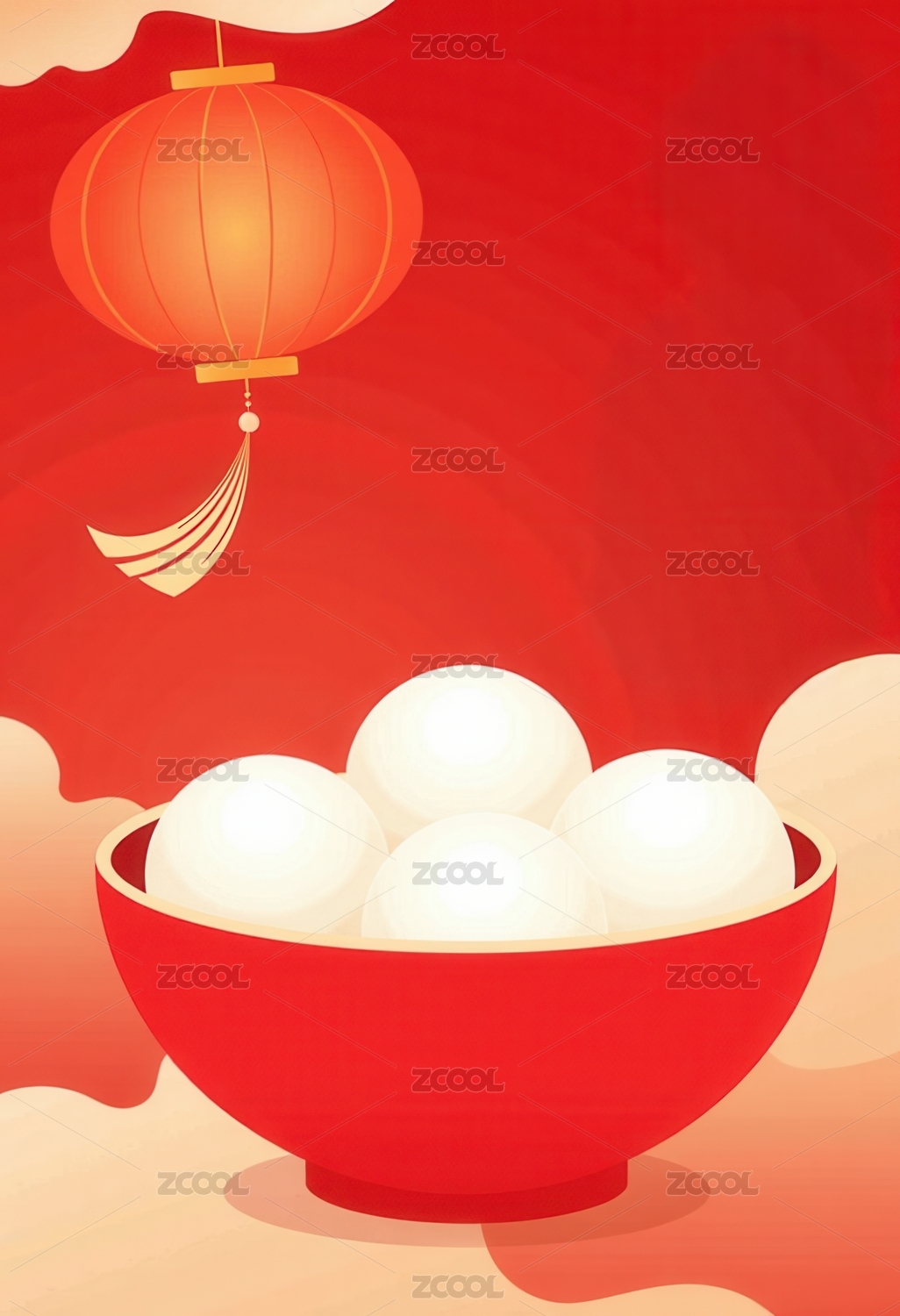 元宵汤圆与红灯笼红色喜庆元宵节插画海报