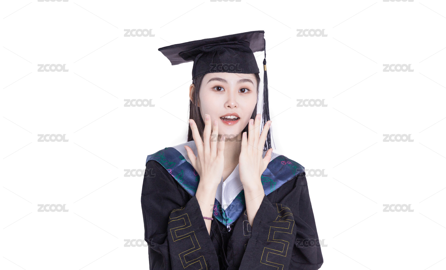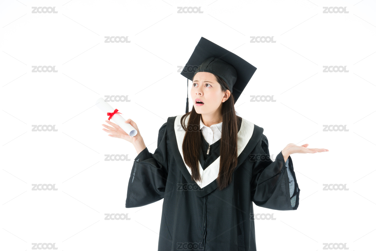女大学生穿着学士服
