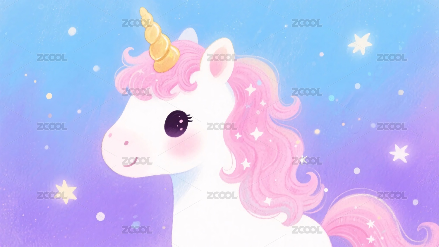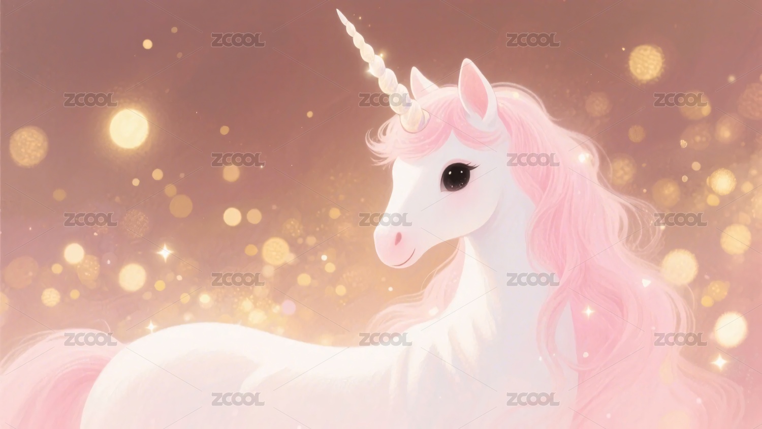 梦幻粉色独角兽插画