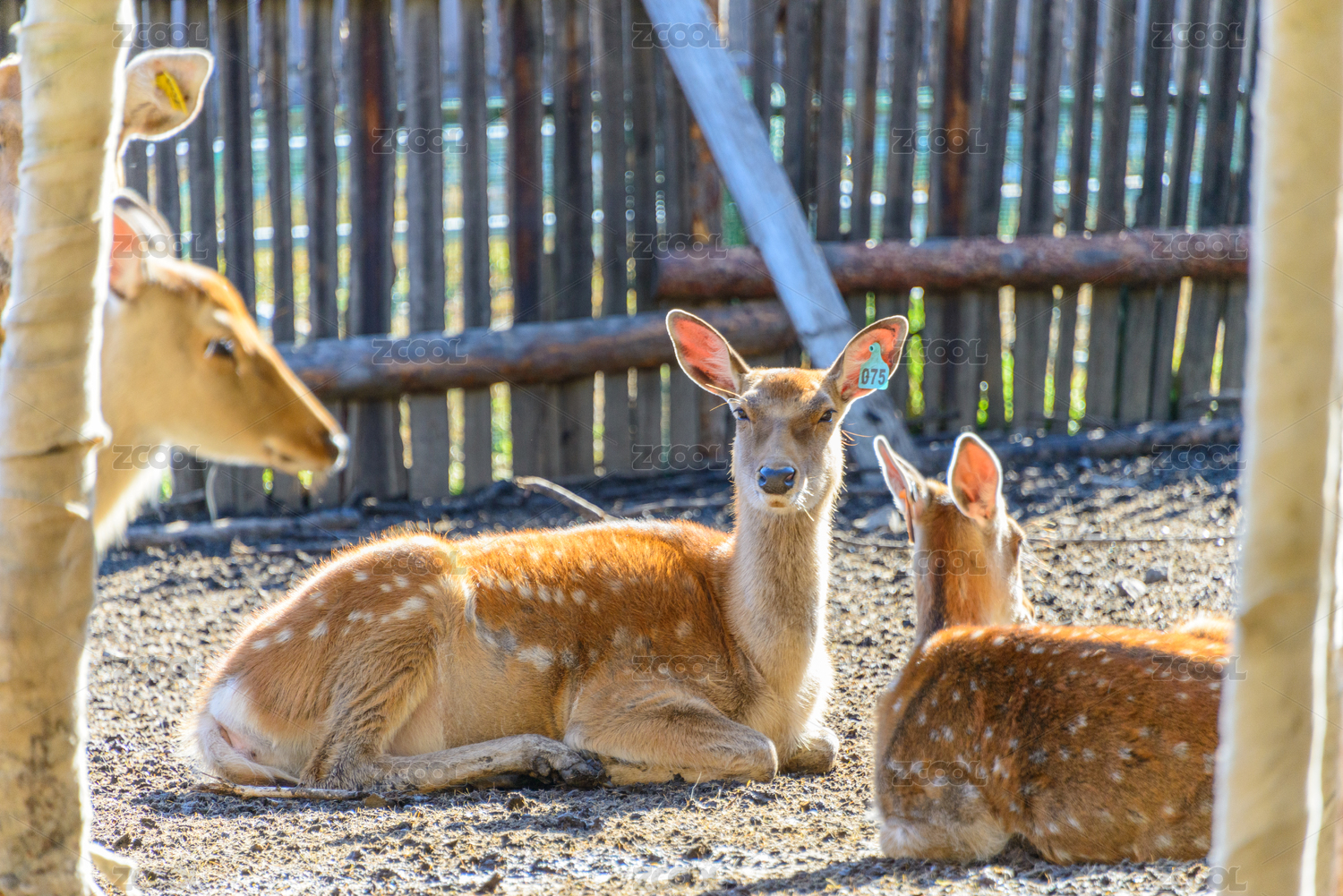 黑龙江大兴安岭漠河鹿苑梅花鹿秋天景色