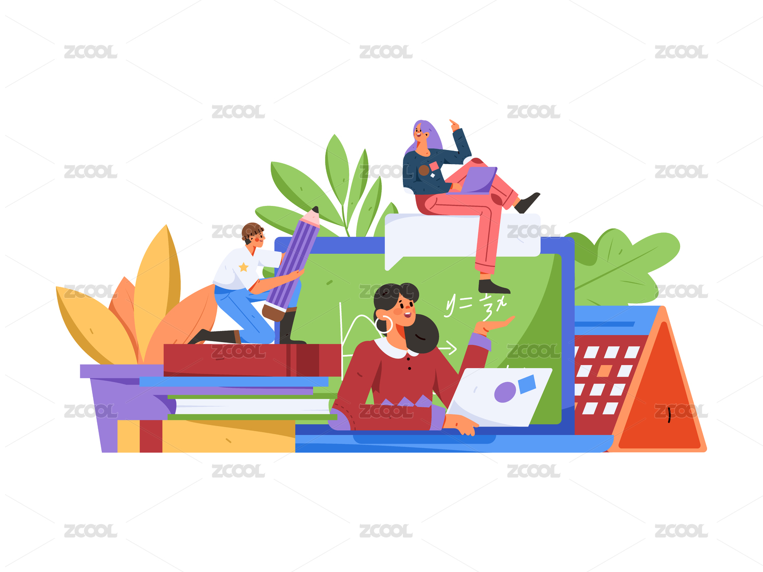 网课教育矢量插画