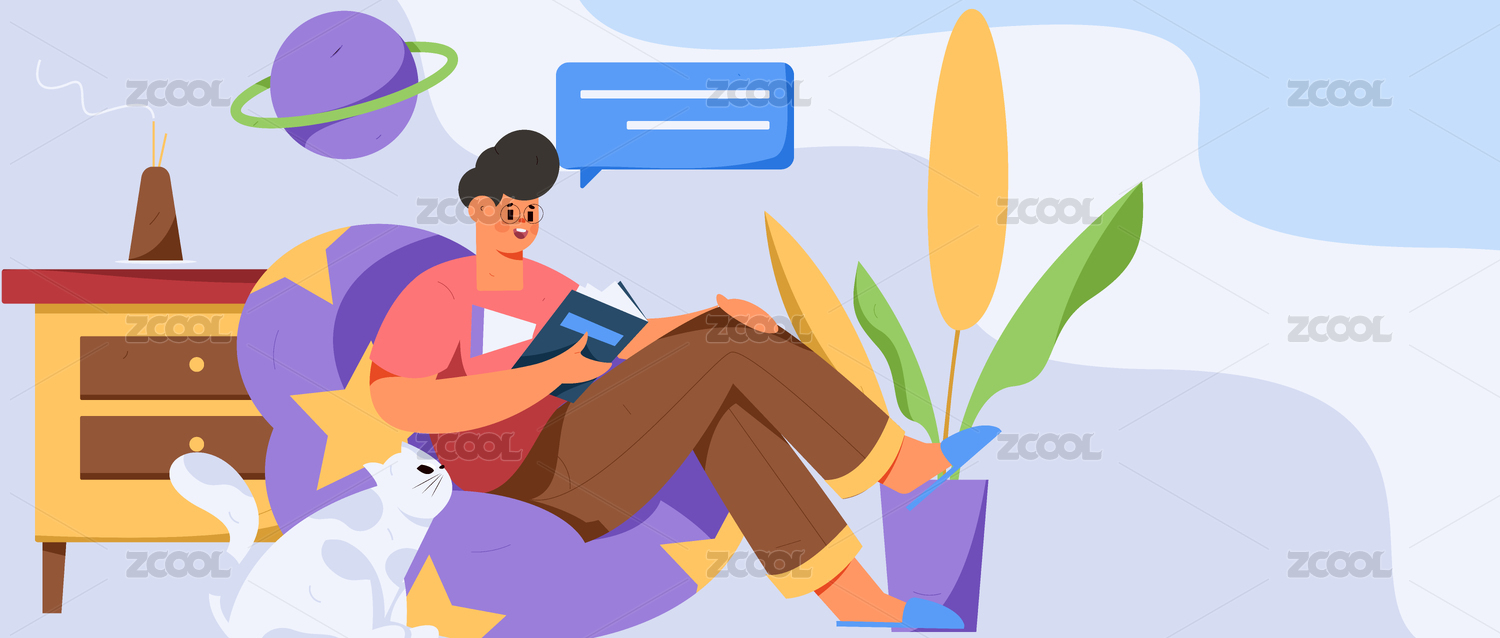卡通自由职业工作吸猫办公求职矢量背景插画
